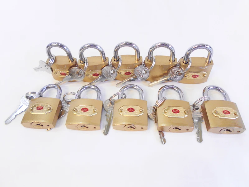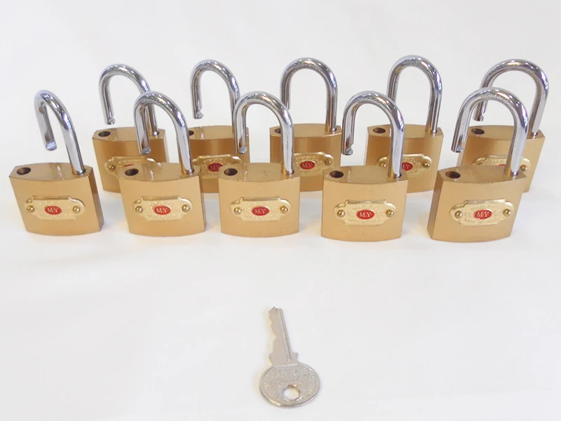 Все навесные замки на 10 шт. открываются всеми одинаковыми ключами по 10 шт., что означает, что каждый из 10 ключей может открыть все 10 навесных замков.