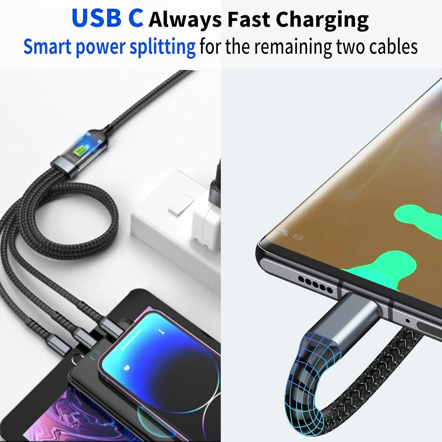 100 Вт сверхбыстрая зарядка USB C Тип 3 в 1 Кабель для передачи данных с подсветкой для IPhone Samsung Xiaomi Huawei Шнуры для быстрой зарядки