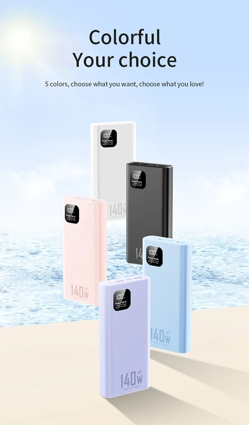 140 Вт 100000 мАч Пауэрбанк с высокой емкостью, поддержкой PD 22.5 Вт и сверхбыстрой зарядкой. Портативное зарядное устройство для iPhone 12-17 и Samsung 2026.