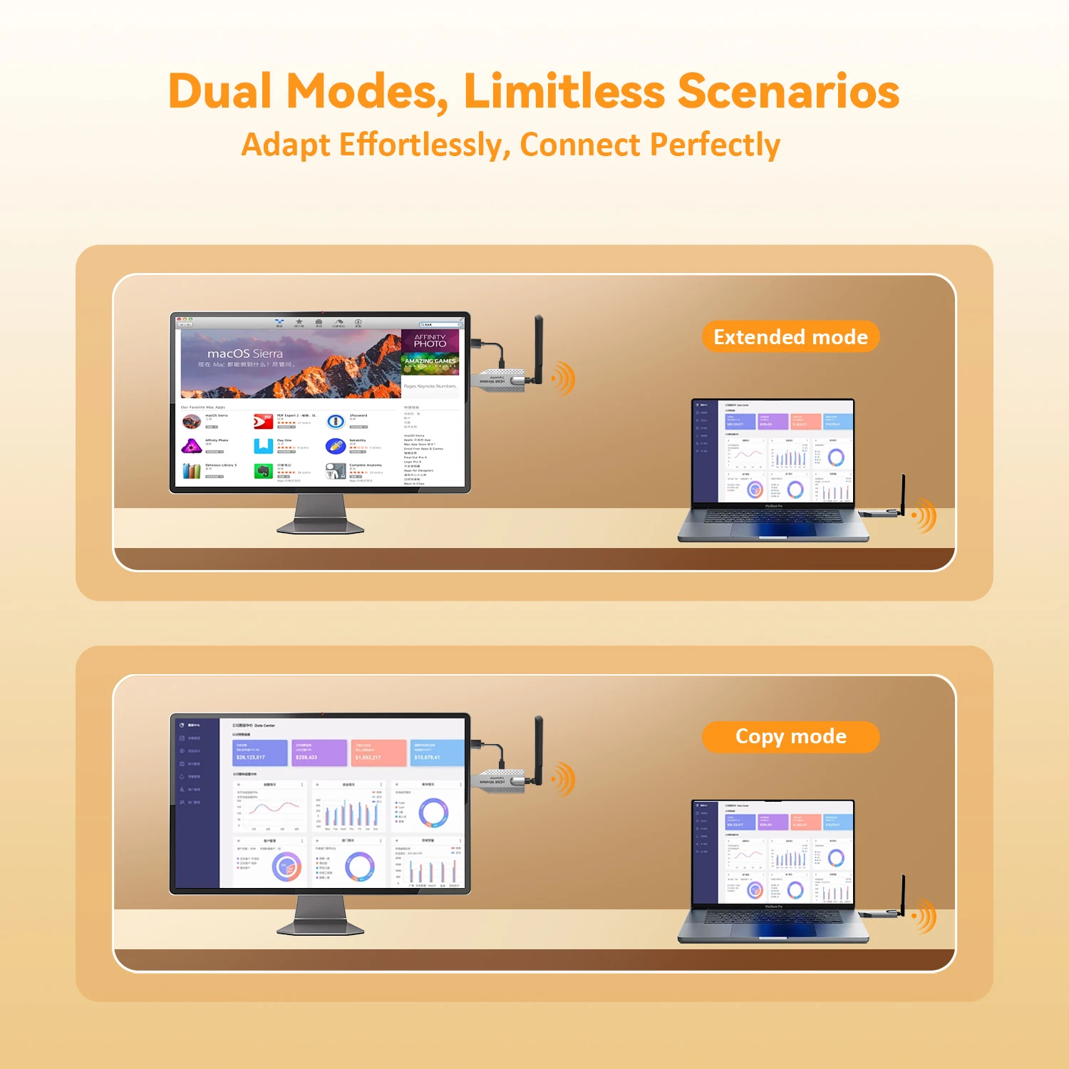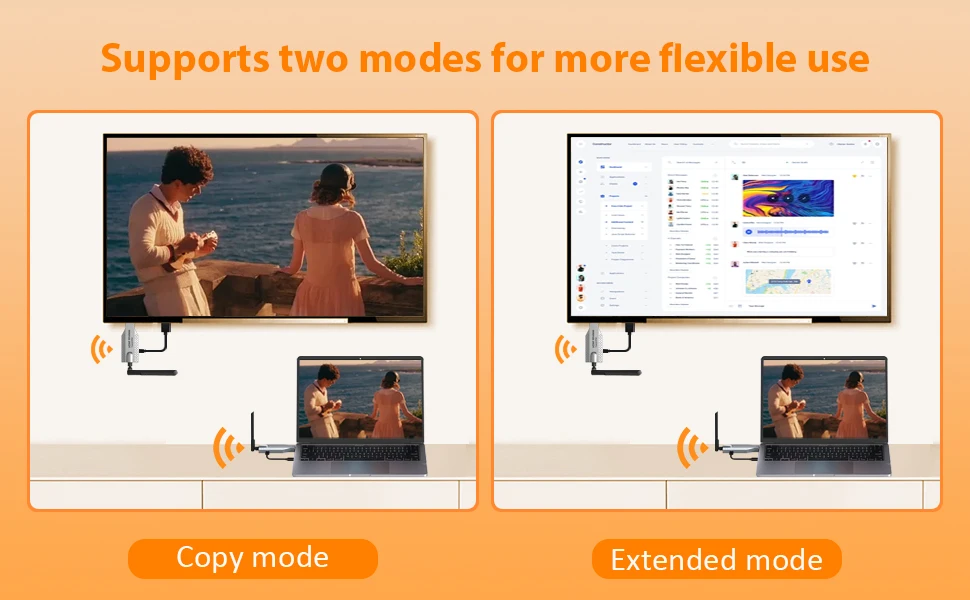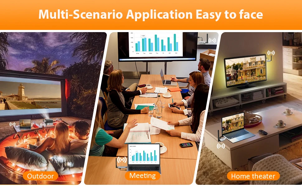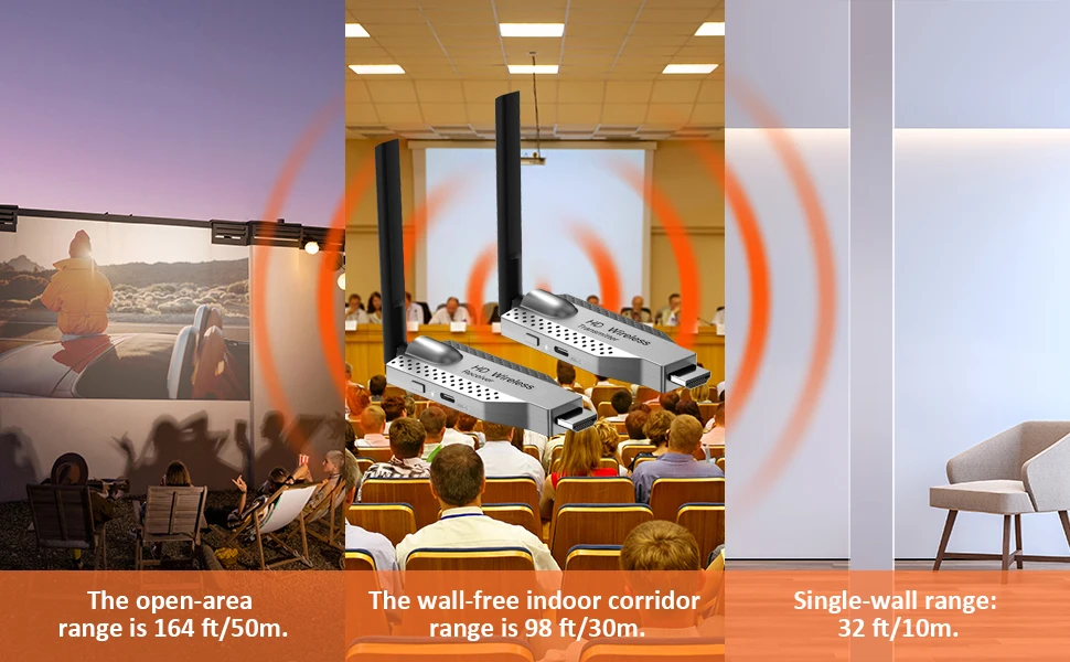 1.Передача видео и звука HDMI через встроенный протокол беспроводной передачи, не требуется Wi-Fi или Интернет.