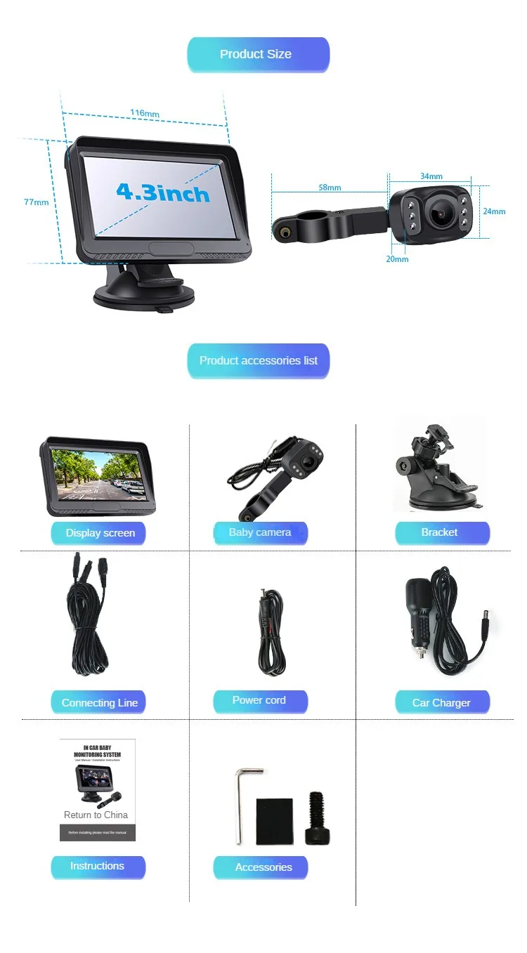 4.3-inch car baby monitoring, 5-inch car baby monitoring |