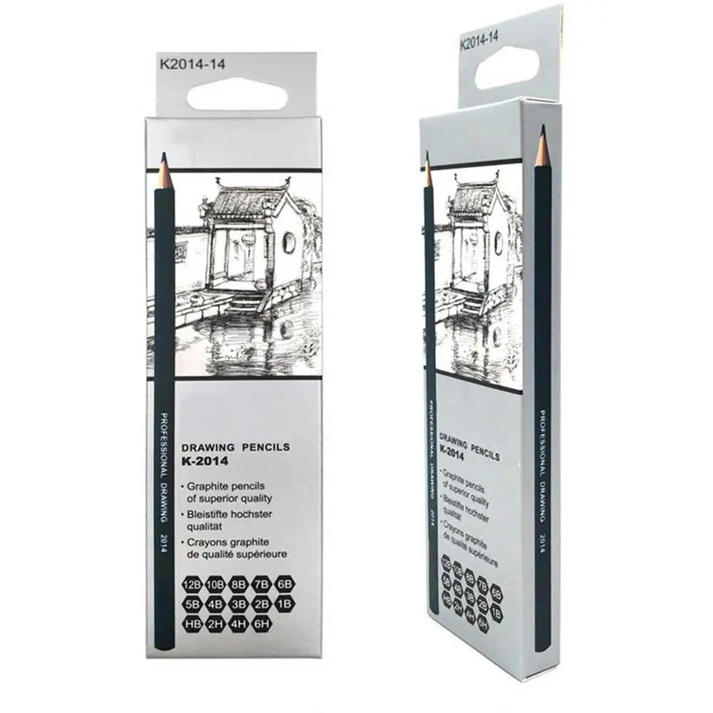 14 шт./компл. 12B 10B 8B 7B 6B 5B 4B 3B 2B B HB 2H 4H 6H графитовые карандаши для рисования эскизов художественная тестовая ручка для начинающих