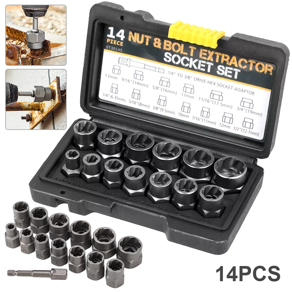 14 шт., набор головок для извлечения гаек и болтов, инструмент для ремонта автомобиля, набор ударных головок 6,35 мм-19 мм, стальные ручные инструменты из Cr-Mo