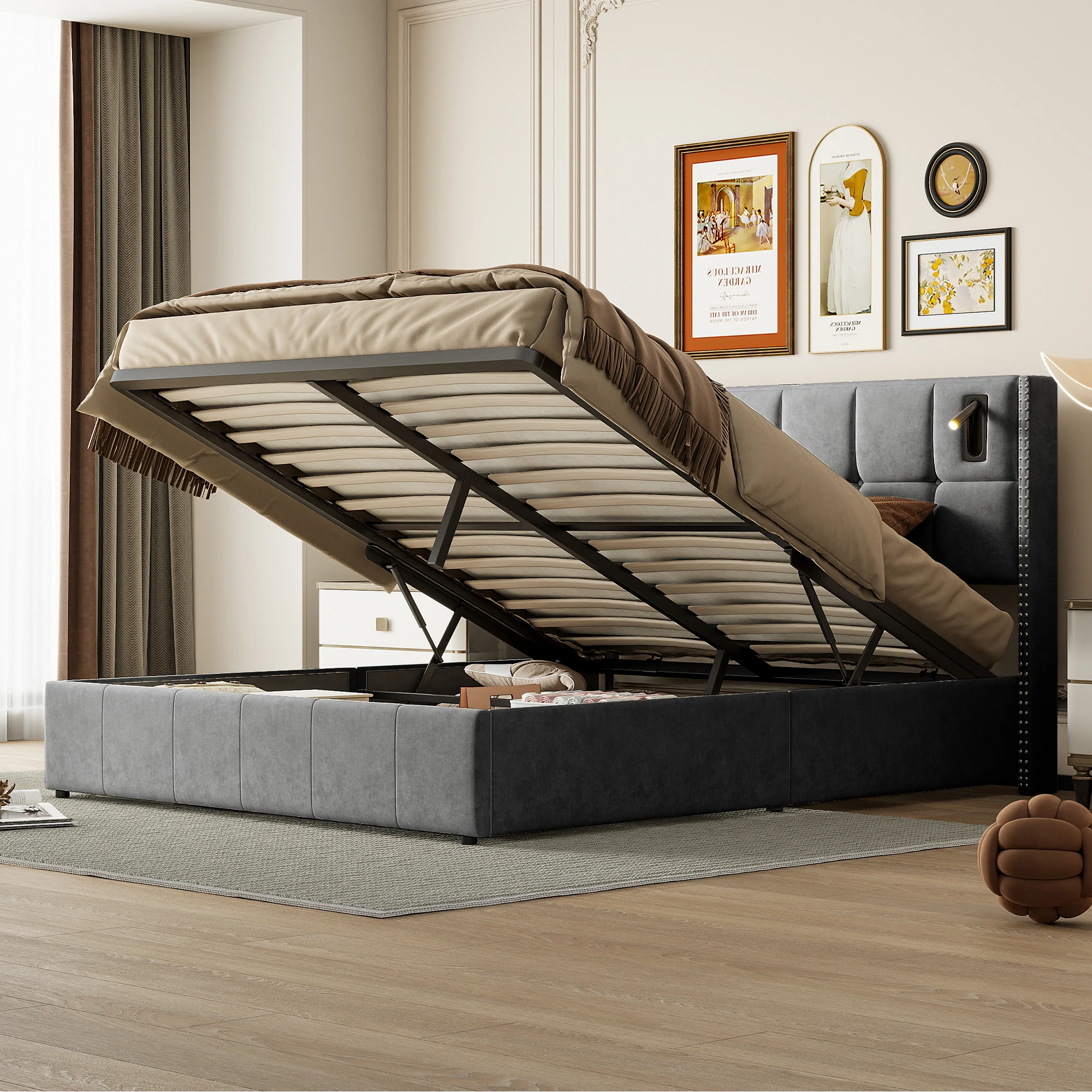 Гидравлическая кровать и место для хранения вещей: место для хранения под кроватью обеспечивает дополнительное место для одежды, подушек, постельного белья или других предметов, помогает пользователям поддерживать порядок и порядок в своей комнате.Этот гидравлический подъемный механизм легко поднимает основание.