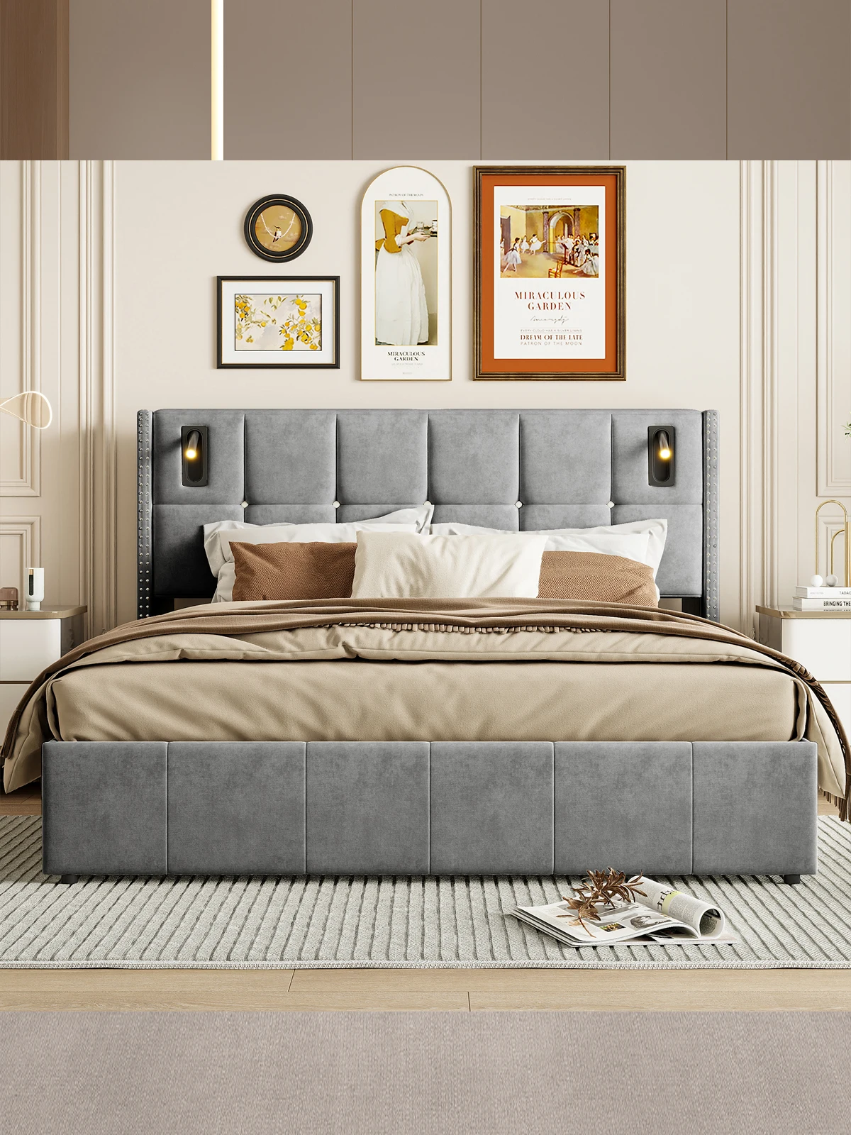 Функциональная кровать: эта кровать оснащена двумя регулируемыми лампами для чтения, 1 USB-портами типа C и 2 портами USB, отвечает потребностям современной жизни.Удобно читайте в постели и просто заряжайте свои устройства, не оставляя следов.