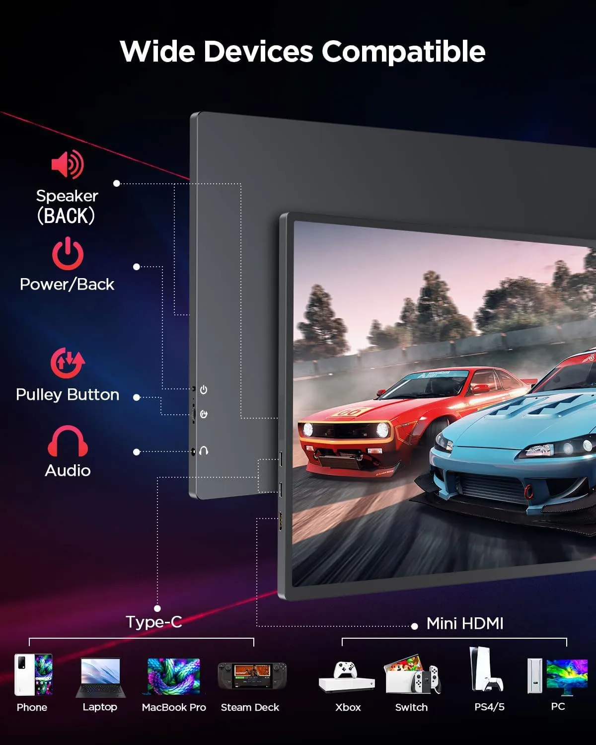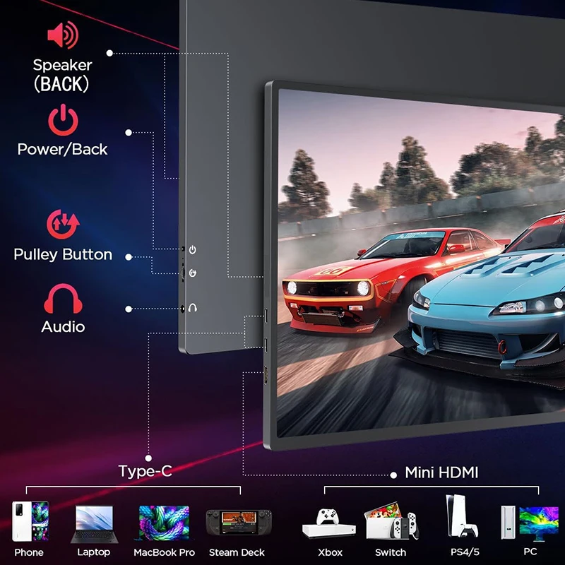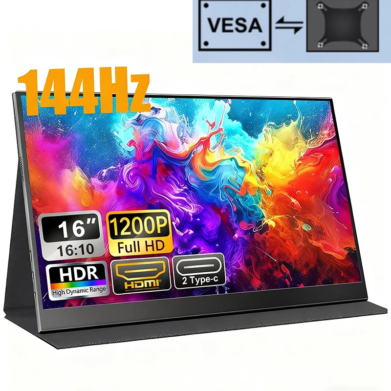 144 Гц 16-дюймовый портативный монитор FHD IPS-экран 1200P HDR 16:10 Дисплей с отверстием VESA HDMI USB Type-C Внешний второй монитор