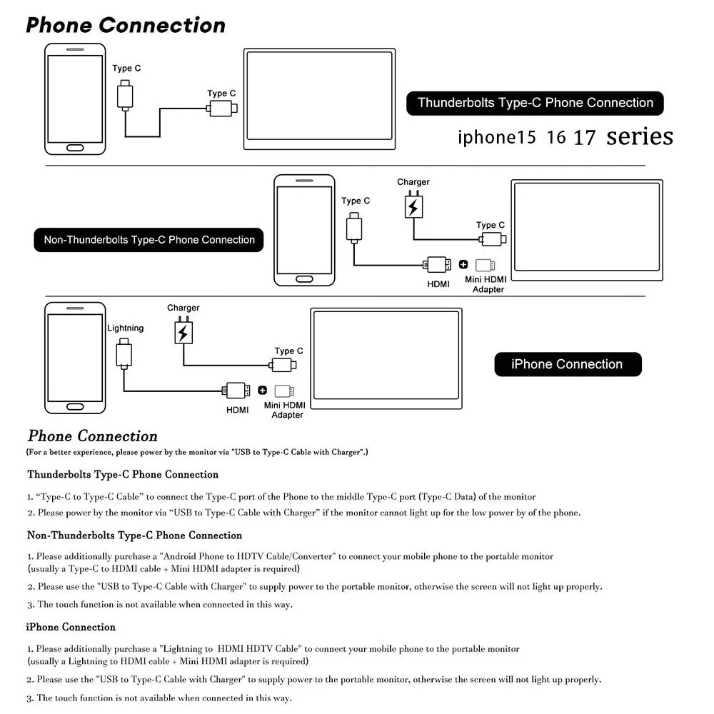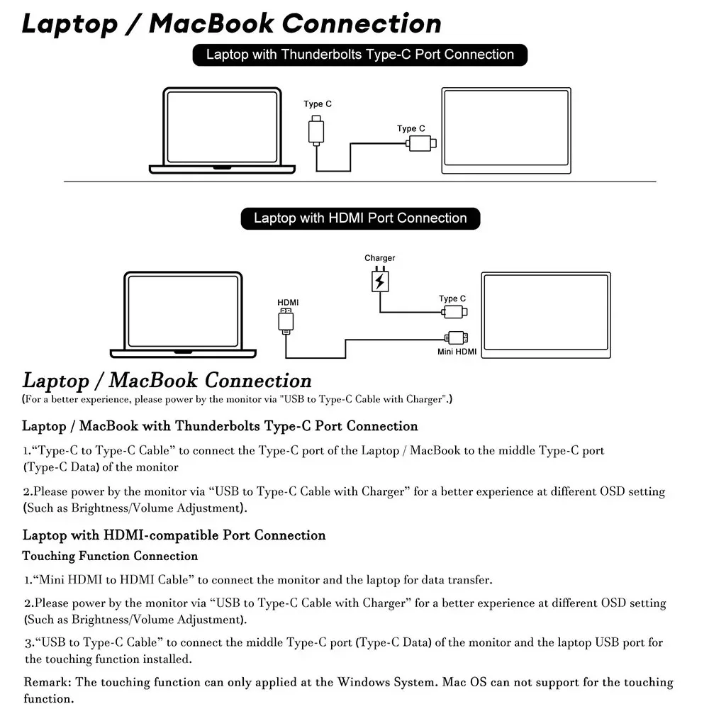 A2: Проверьте подключение: Для ноутбуков/настольных компьютеров подключите как HDMI, так и сенсорный кабели (входят в комплект).Для интерфейсов USB-C ваш порт должен поддерживать Type-C 3.1+/Thunderbolt 3.