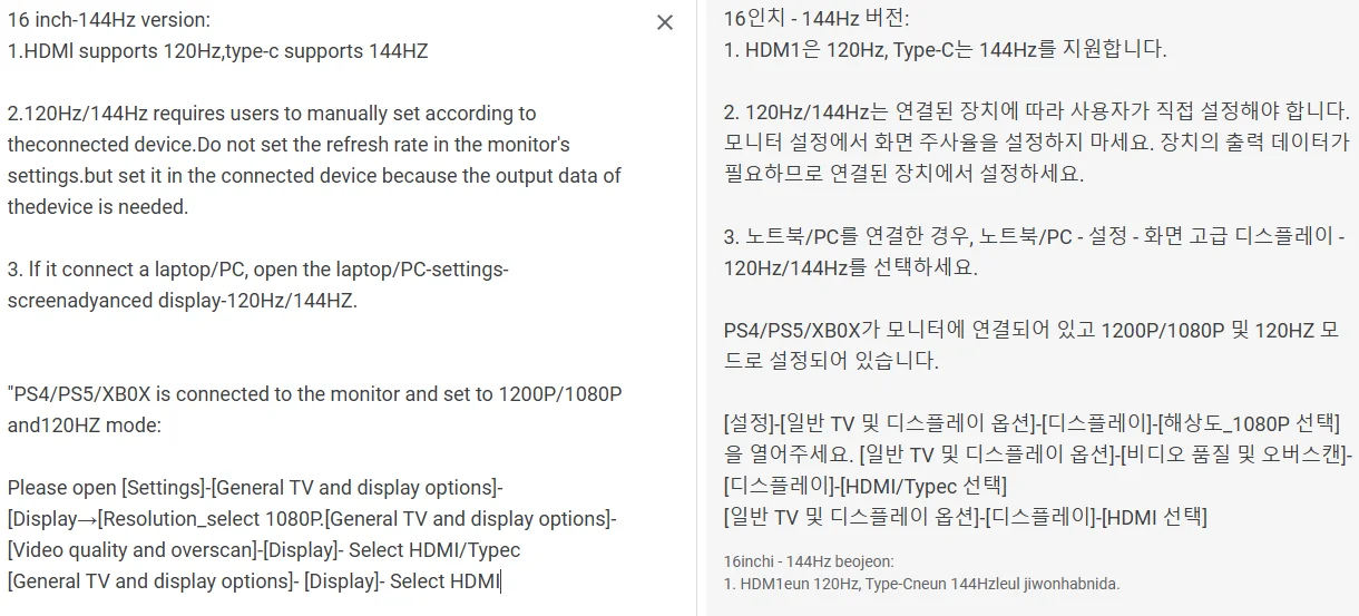 HDMI Support 120Hz,USB-C Support 144Hz