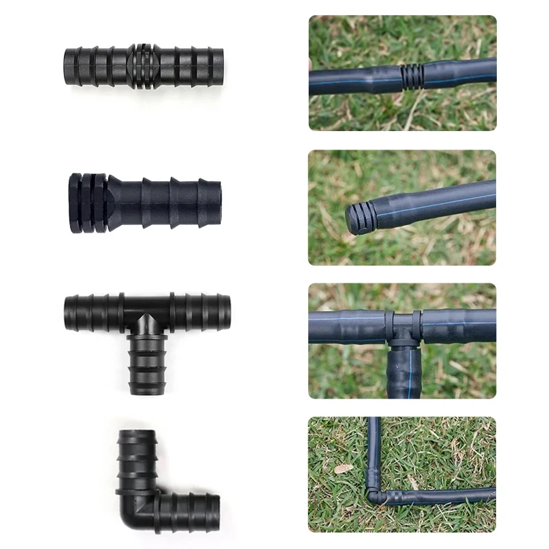 2/5/10 шт. полиэтиленовая труба для теплицы 16, 20, 25 мм, тройник, прямая коленчатая заглушка, фитинг для ирригационной трубы, аксессуары для орошения с микрораспылением