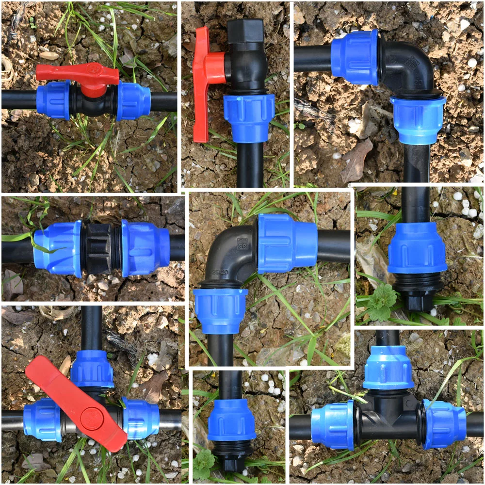 20/25/32/40/50/63 мм пластиковая полиэтиленовая трубка, соединитель для водопроводной воды, тройник, разветвитель, быстроразъемная муфта клапана, коленная заглушка, фитинги для орошения
