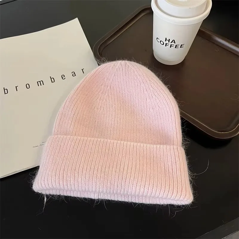 2024, вязаная зимняя шапка из ангоры для женщин, пушистые вязаные шапочки с кроличьим мехом, корейский роскошный капот, женские мягкие теплые шапочки Skullies