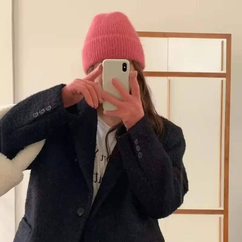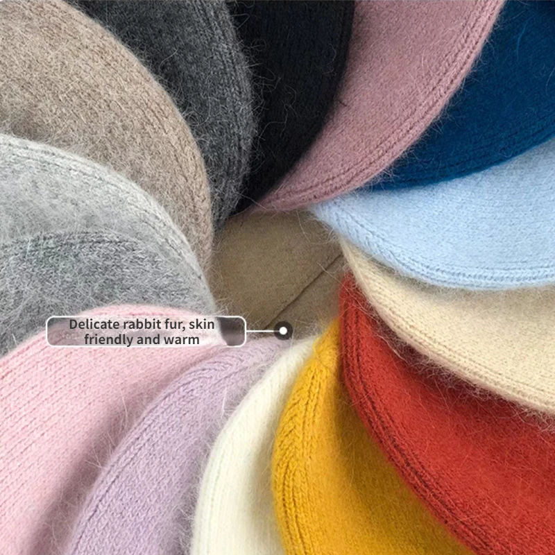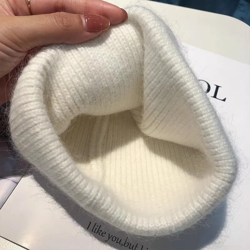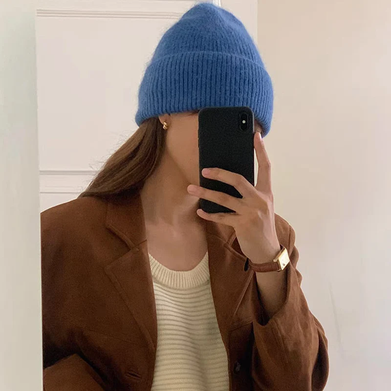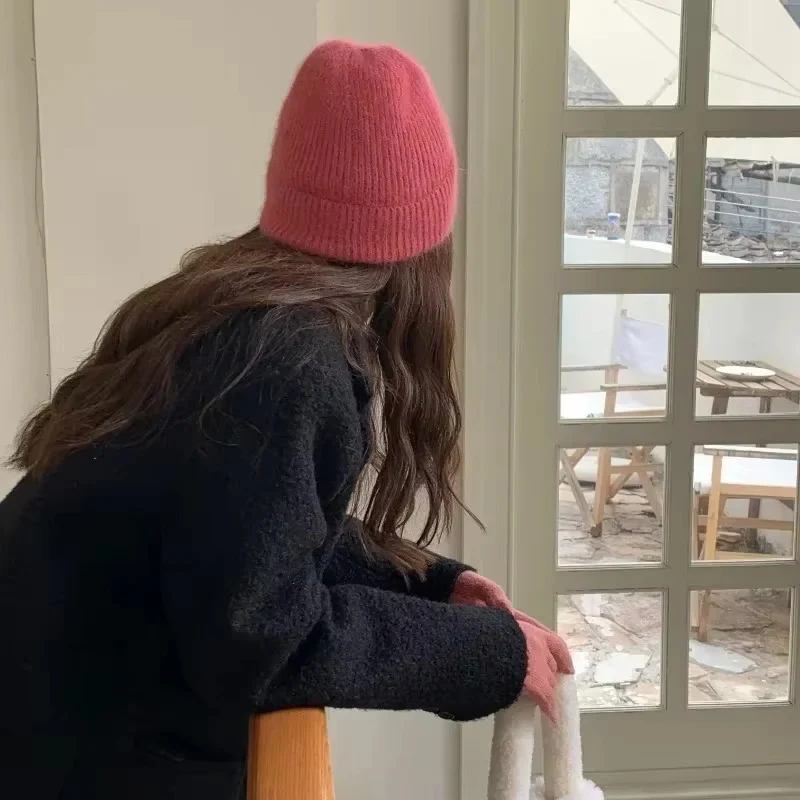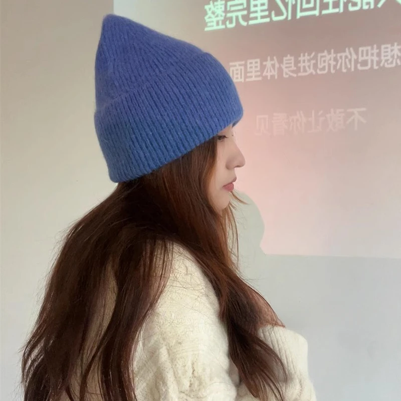 2024, вязаная зимняя шапка из ангоры для женщин, пушистые вязаные шапочки с кроличьим мехом, корейский роскошный капот, женские мягкие теплые шапочки Skullies