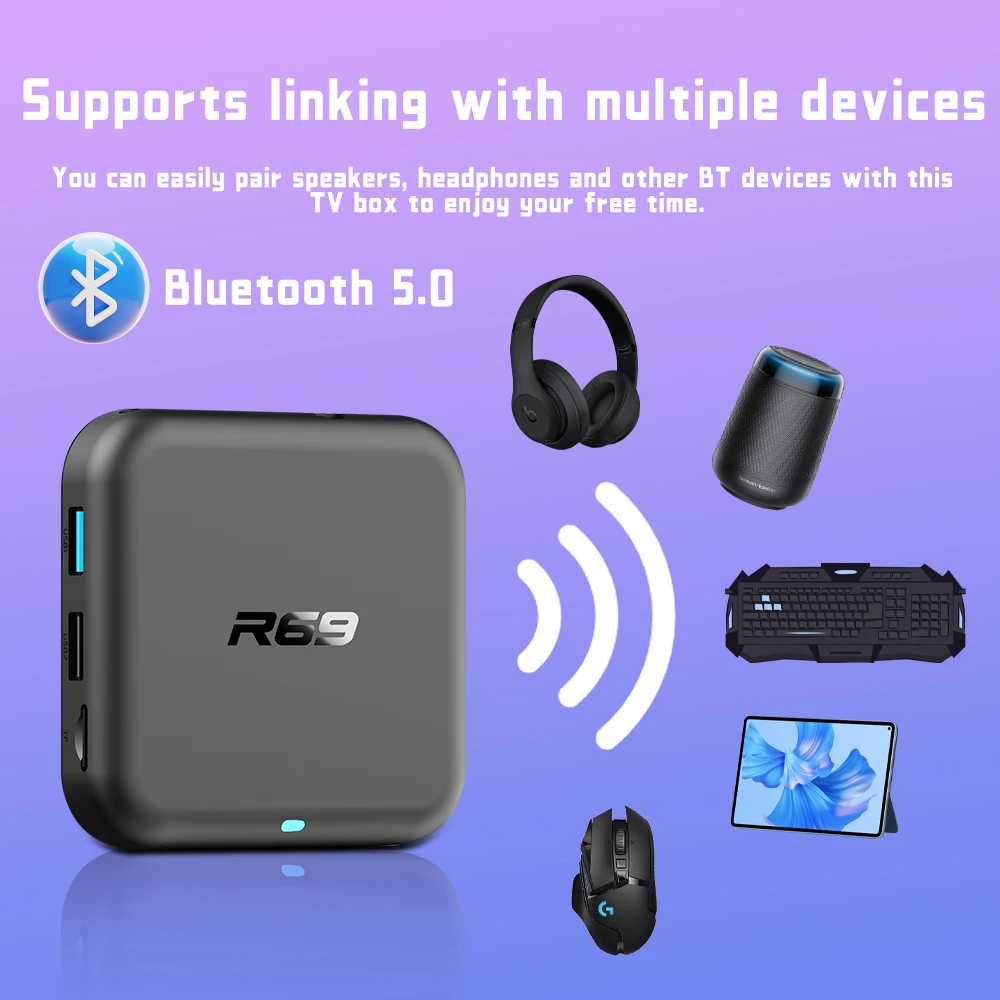2024 Новый глобальный Android 14.0 ТВ-приставка R69-1 Поддержка 4K RK3518 Bluetooth 5,0 WIFI 6 ОЗУ 8 ГБ ПЗУ 128 ГБ Многоязычная Smart TV BOX