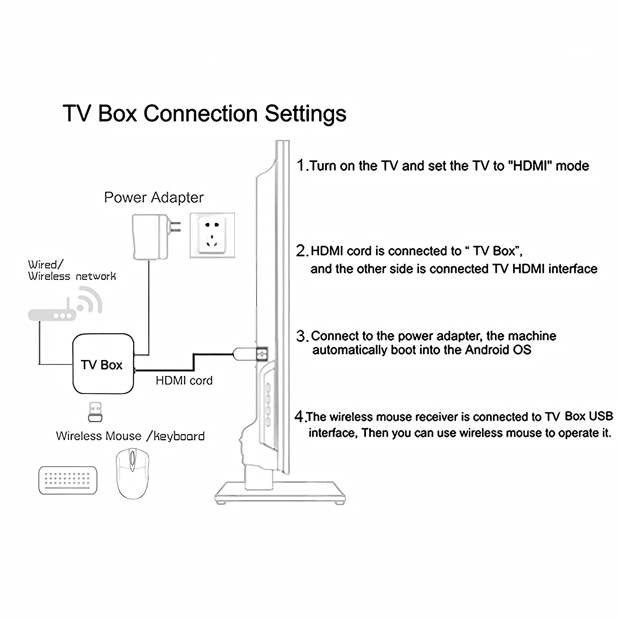 ТВ-приставка Android, адаптер питания, пульт дистанционного управления, кабель HDMI, руководство пользователя.