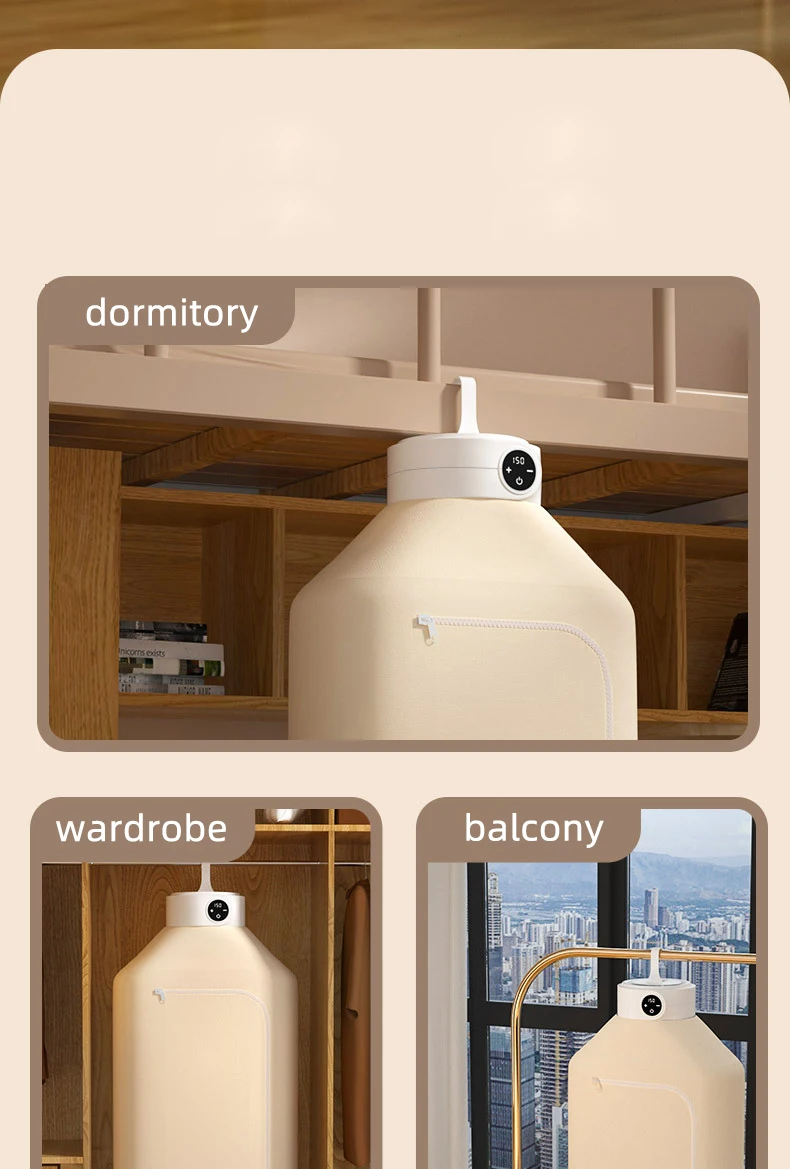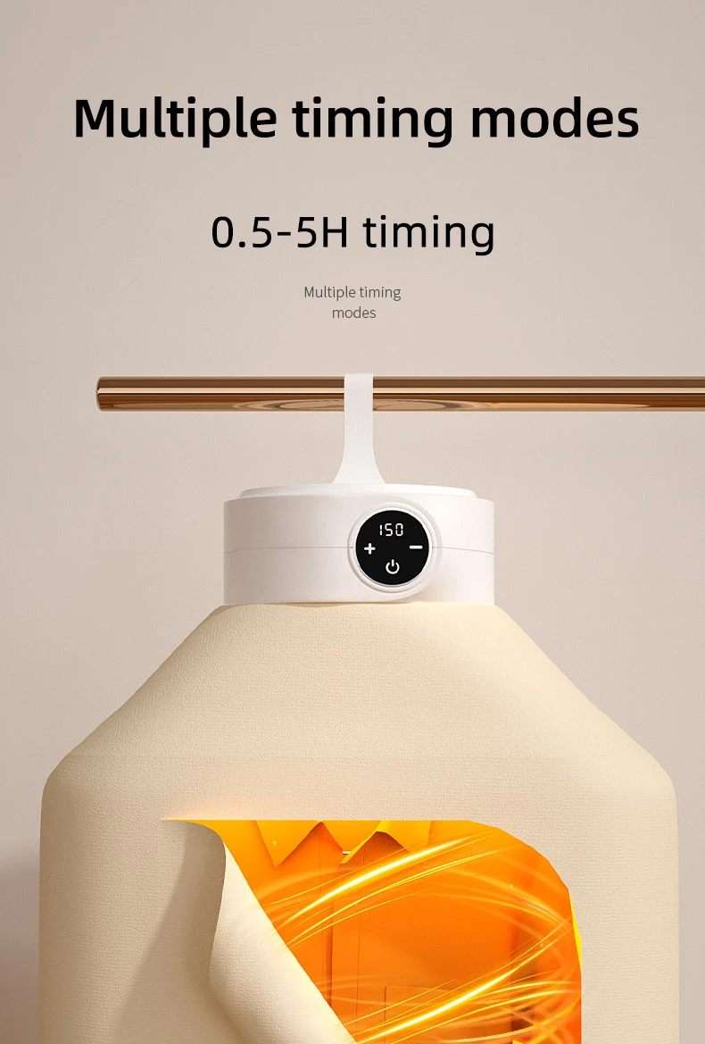 2025 Новая светодиодная сушилка для одежды с цифровым дисплеем и контролем температуры, домашняя портативная складная сушилка для одежды с сумкой для сушки