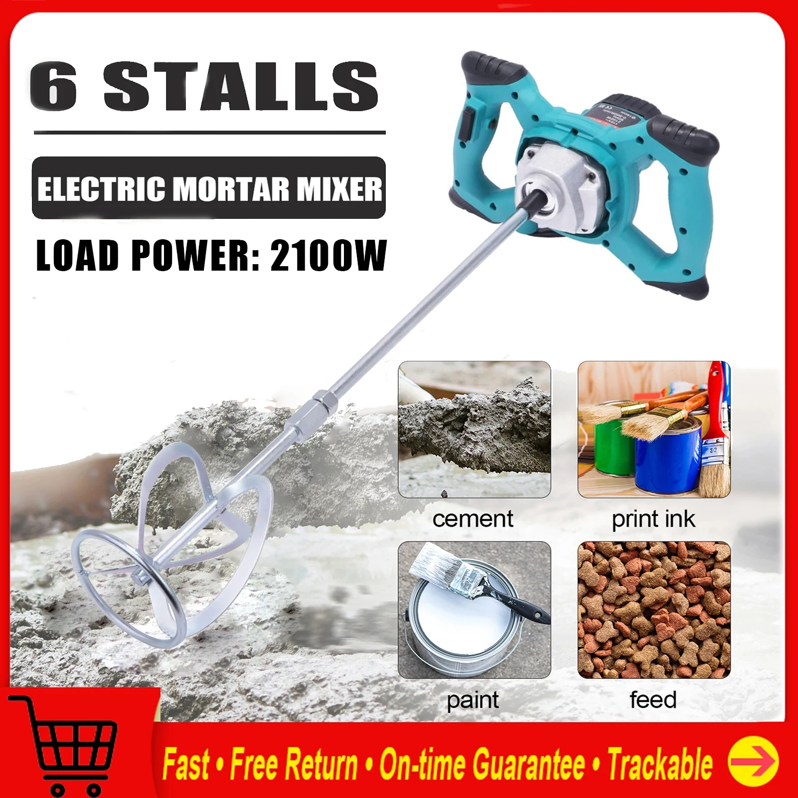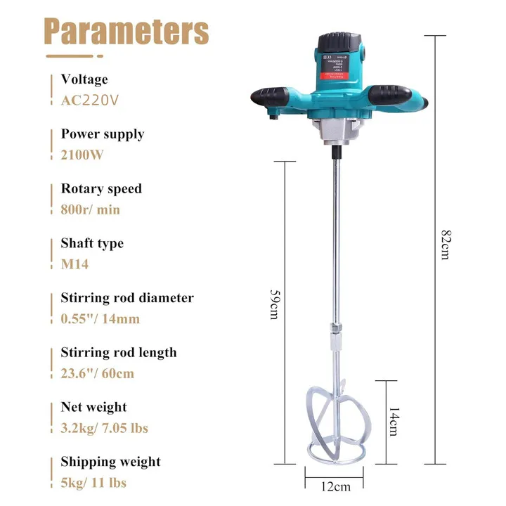 2100 Вт небольшой миксер для краски и покрытия, портативный, 6 скоростей, высокая мощность, ручной электрический миксер для шпаклевки, порошка, цемента, бетона