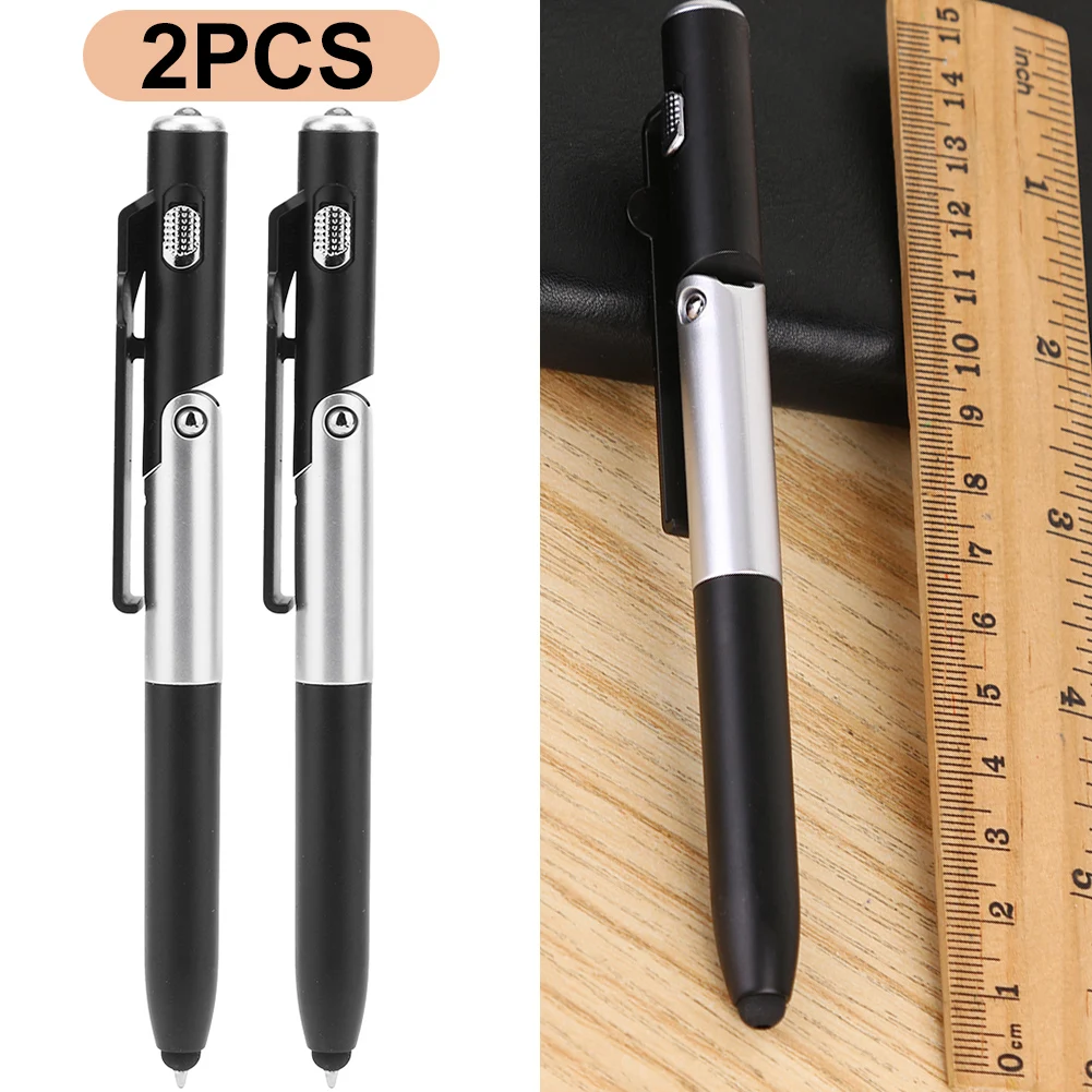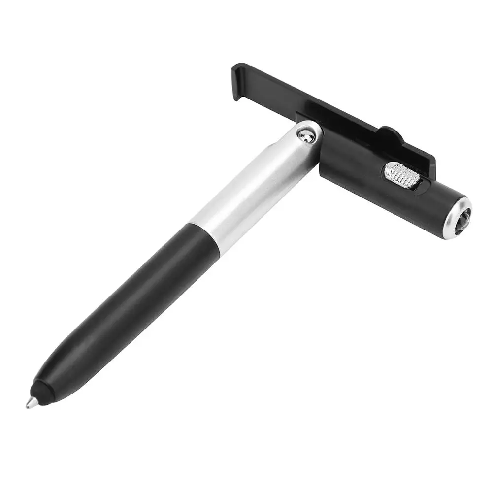 2шт многофункциональная шариковая ручка складной светодиодный светильник держатель для телефона ручка (черный)