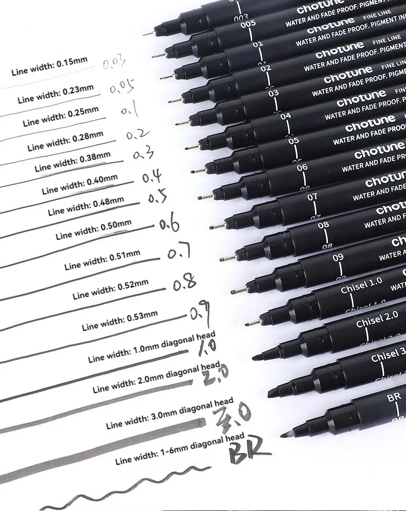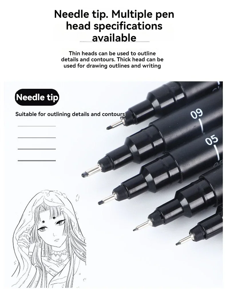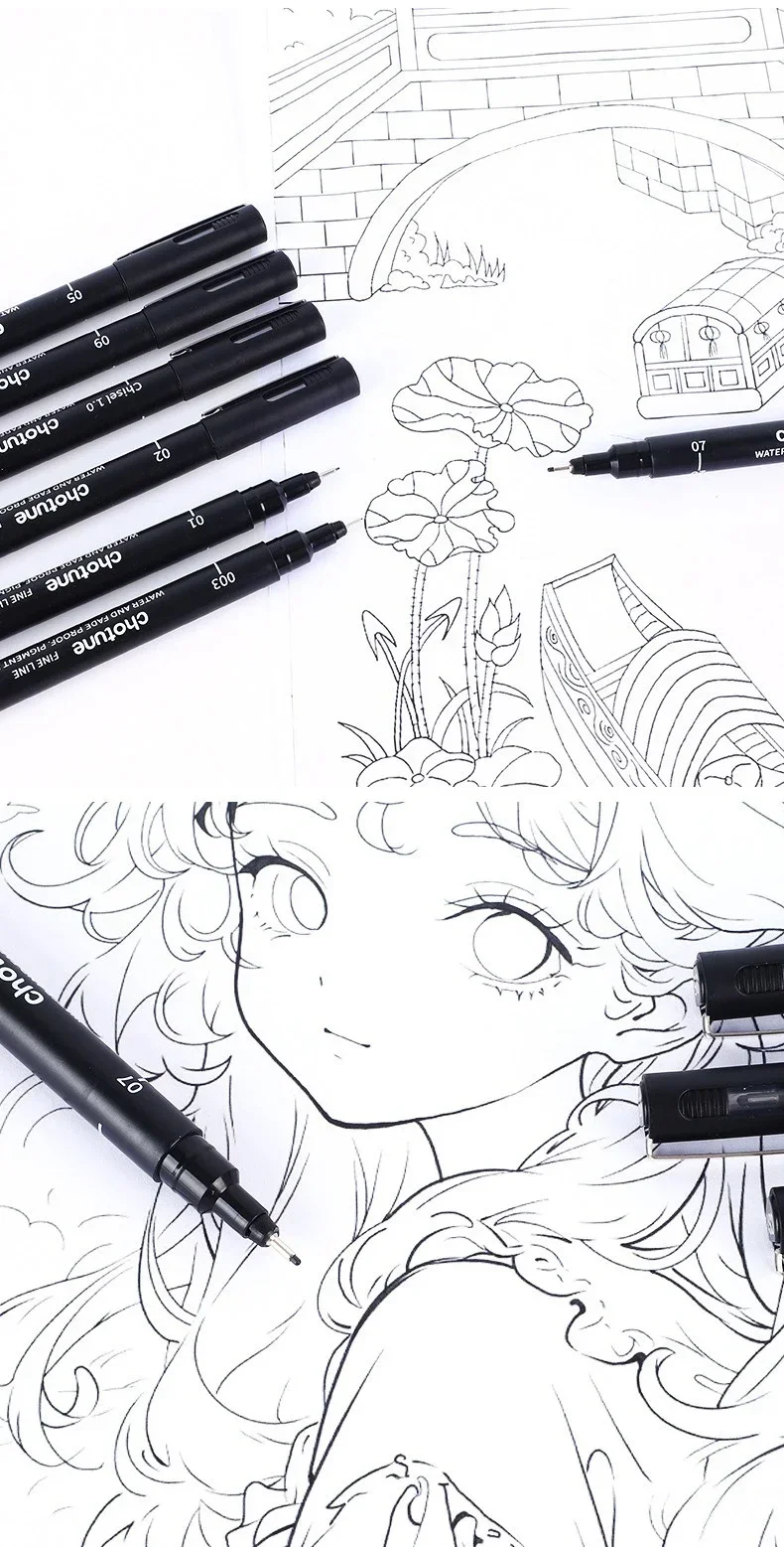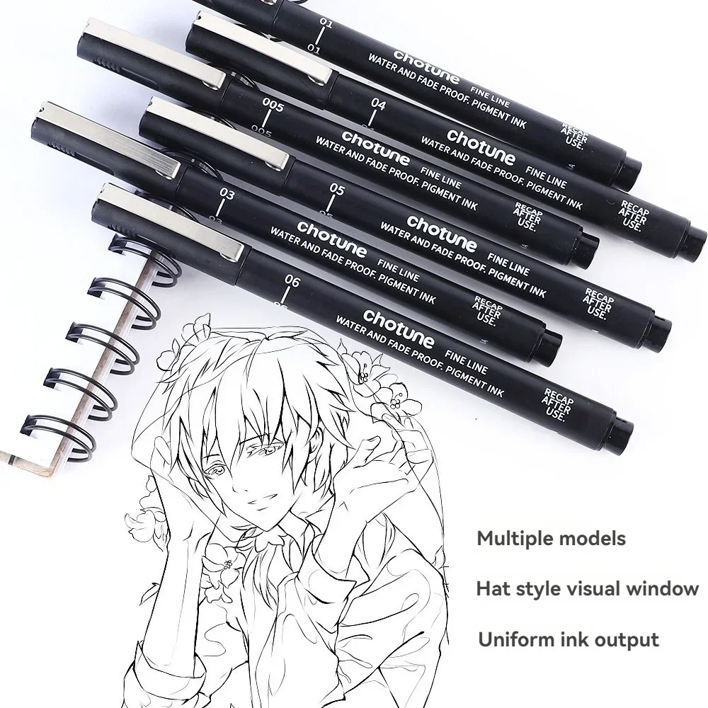 3/15 наконечников, черный пигмент, микро-ручка, тонкая подводка, чернильные ручки, ручки для рисования и иллюстраций, мультистайлинг для рисования, дизайн аниме, манга