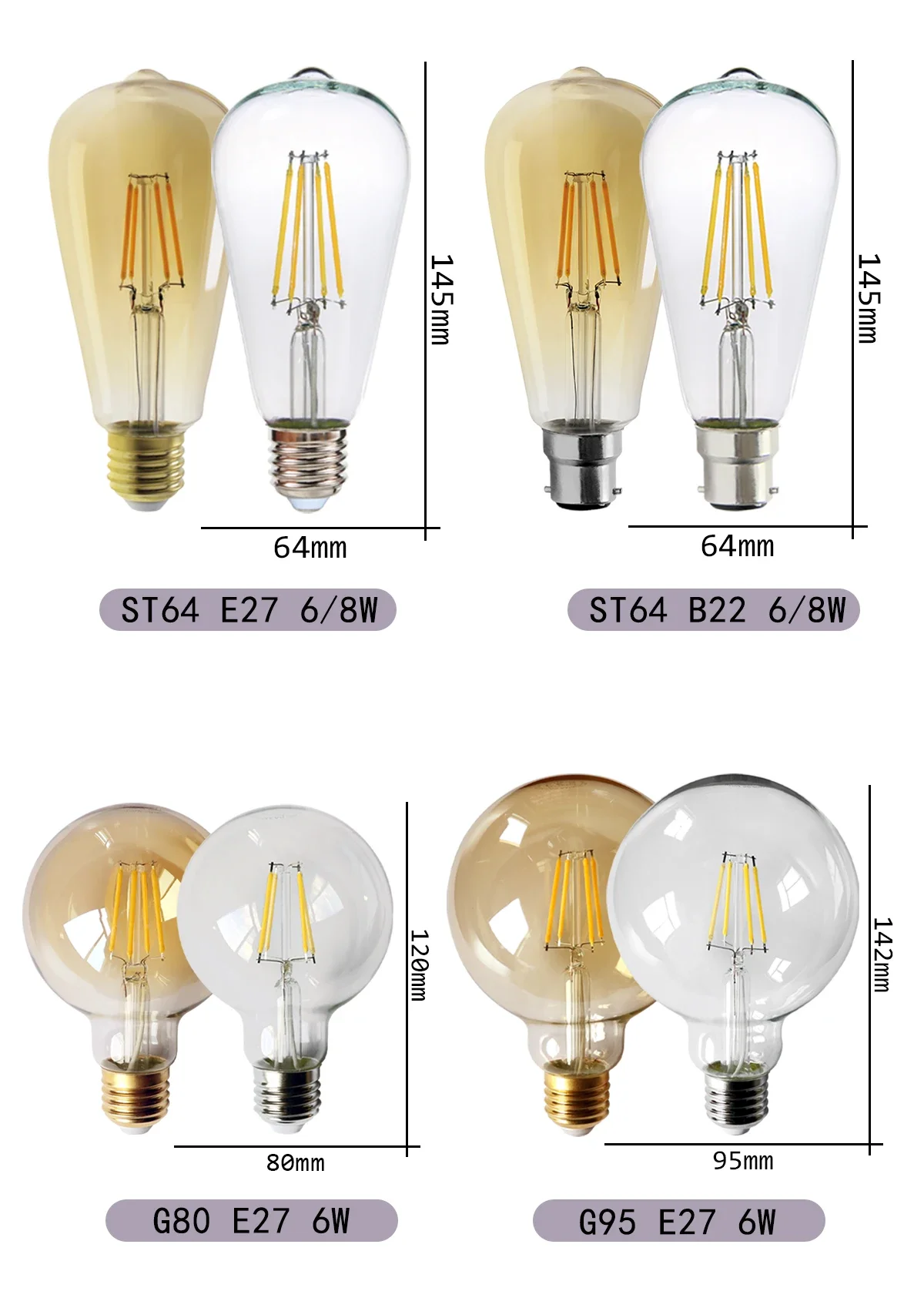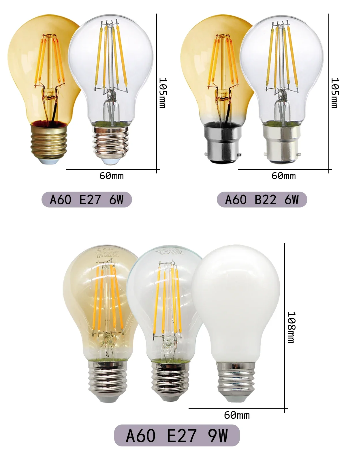 3 шт. Ретро светодиодная лампа E27 B22 E14 C35 A60 ST64 AC220-240V Лампа накаливания Эдисона Винтаж Теплое стекло Лампа Освещение Внутреннее освещение