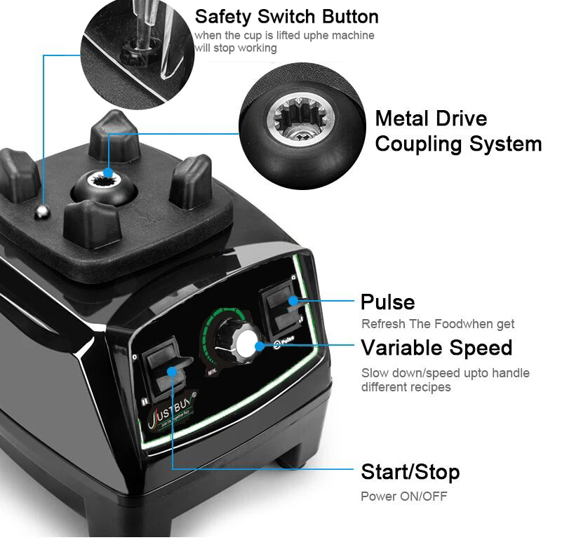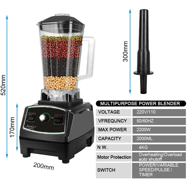3HP 2200W сверхмощный коммерческий блендер, измельчитель, миксер, соковыжималка, кухонный комбайн, ледяные смузи