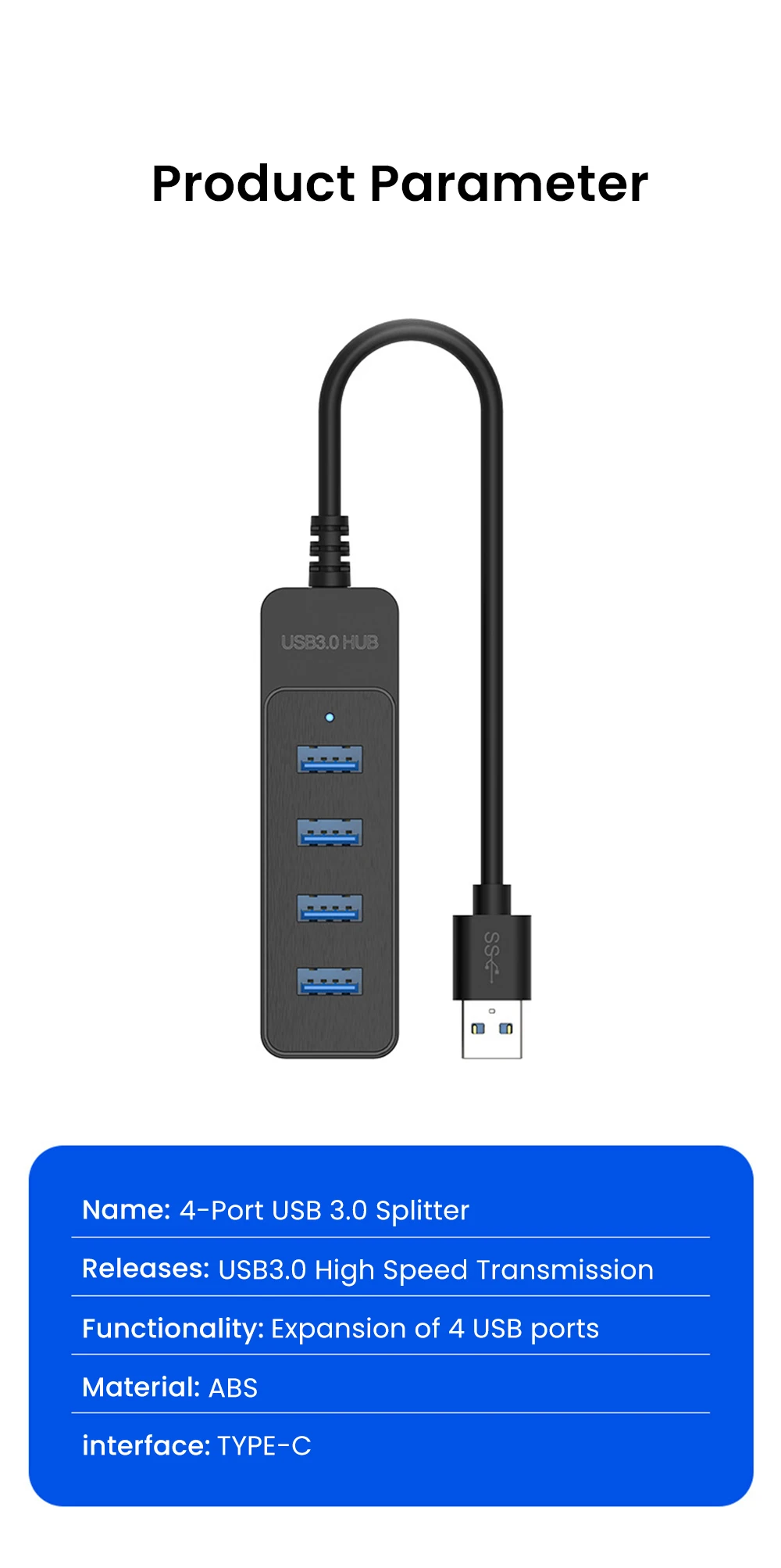 4-портовый USB 3.0 HUB, высокоскоростной расширитель типа C, разветвитель 5 Гбит/с для ПК, компьютерные аксессуары, многопортовый адаптер USB-концентратора для ноутбука