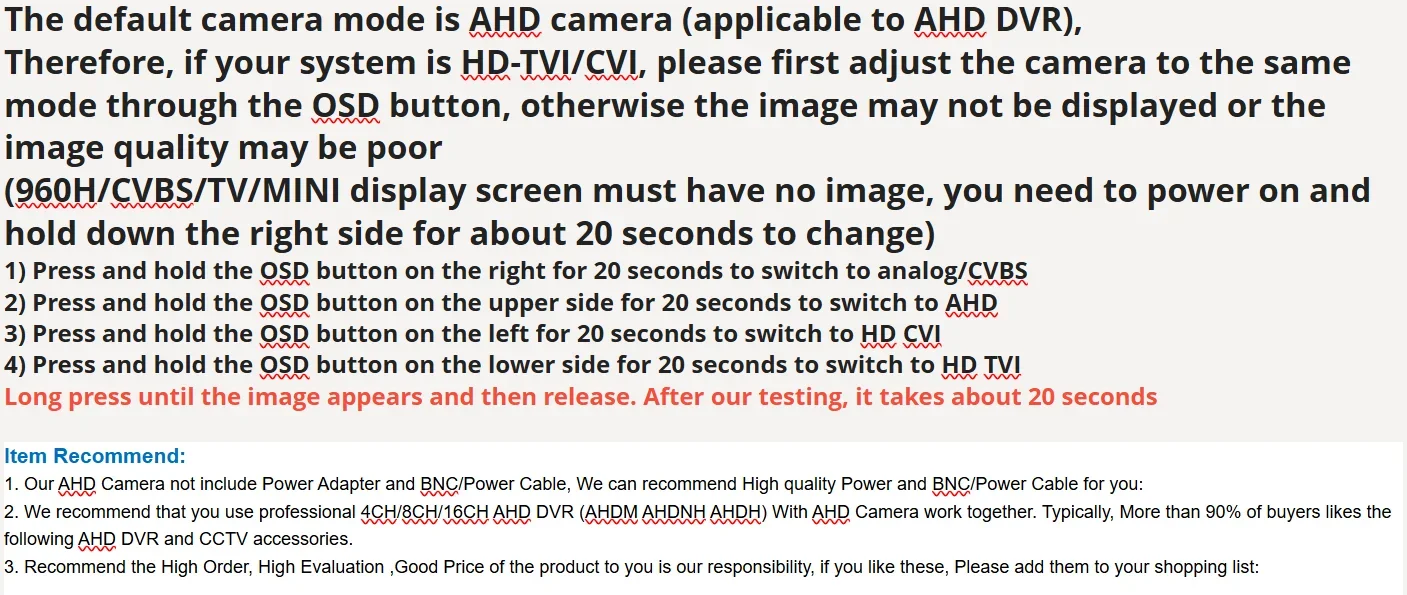 Summary AHD/TVI/CVI DVR,Otherwise, only analog mode can be used |