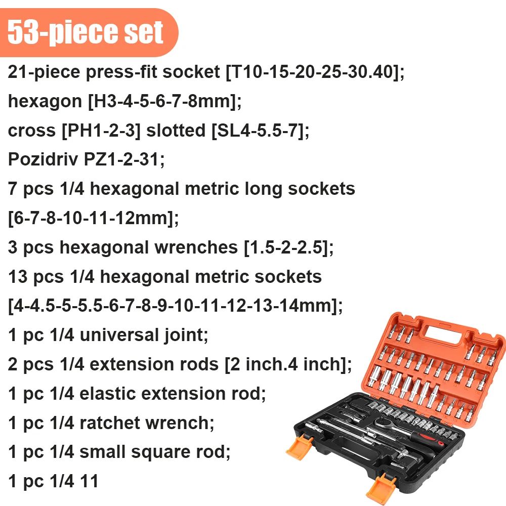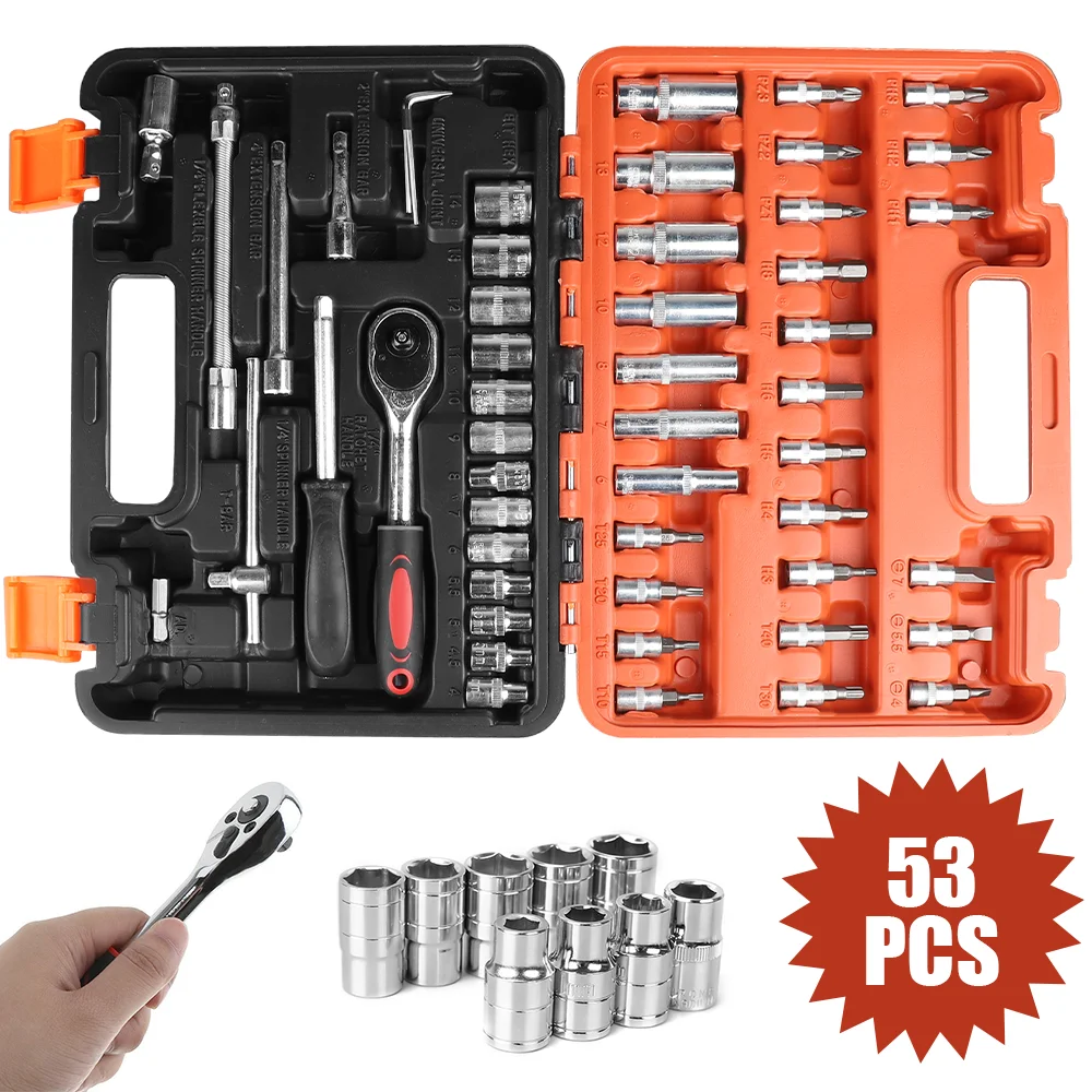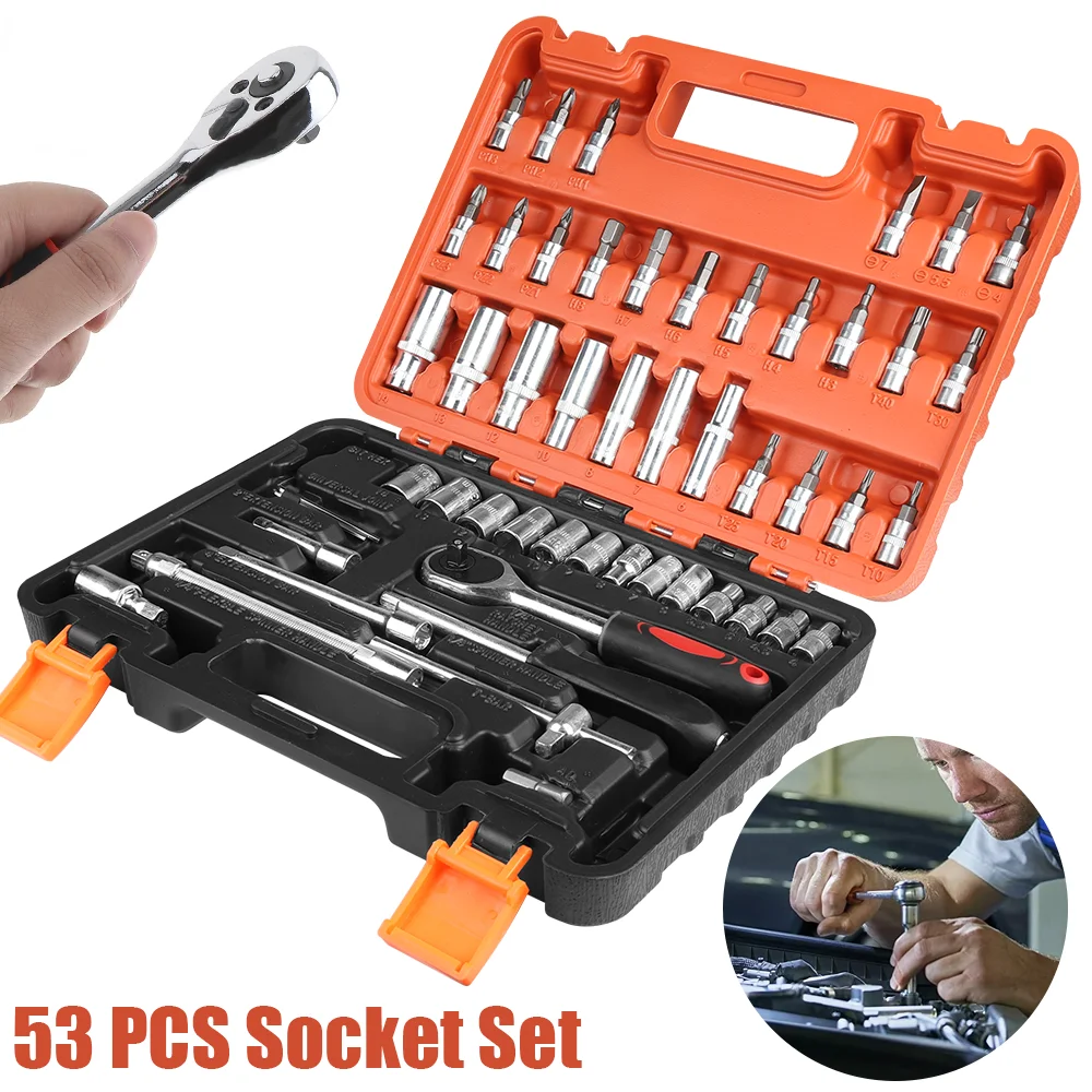 53 шт./компл. набор инструментов для ремонта автомобиля, набор головок для привода, инструменты для ремонта автомобиля, трещотка, динамометрический ключ, комбинированный инструмент для ремонта автомобиля, набор головок