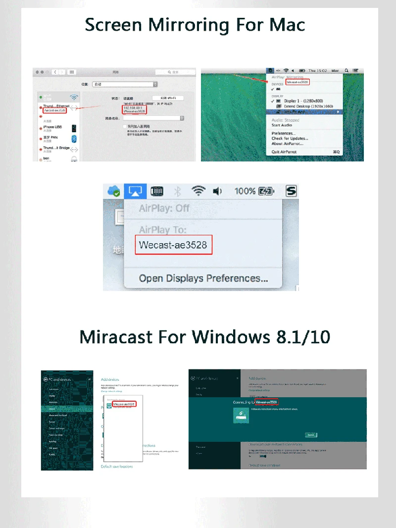 • 1. Беспроводной дисплей: этот беспроводной адаптер дисплея может осуществлять зеркальное отображение или потоковую передачу вашего мобильного устройства на телевизор/проектор/монитор по беспроводной сети.Легко делитесь видео, фотографиями и фильмами на большом экране.Сделайте свой телевизор умным телевизором
