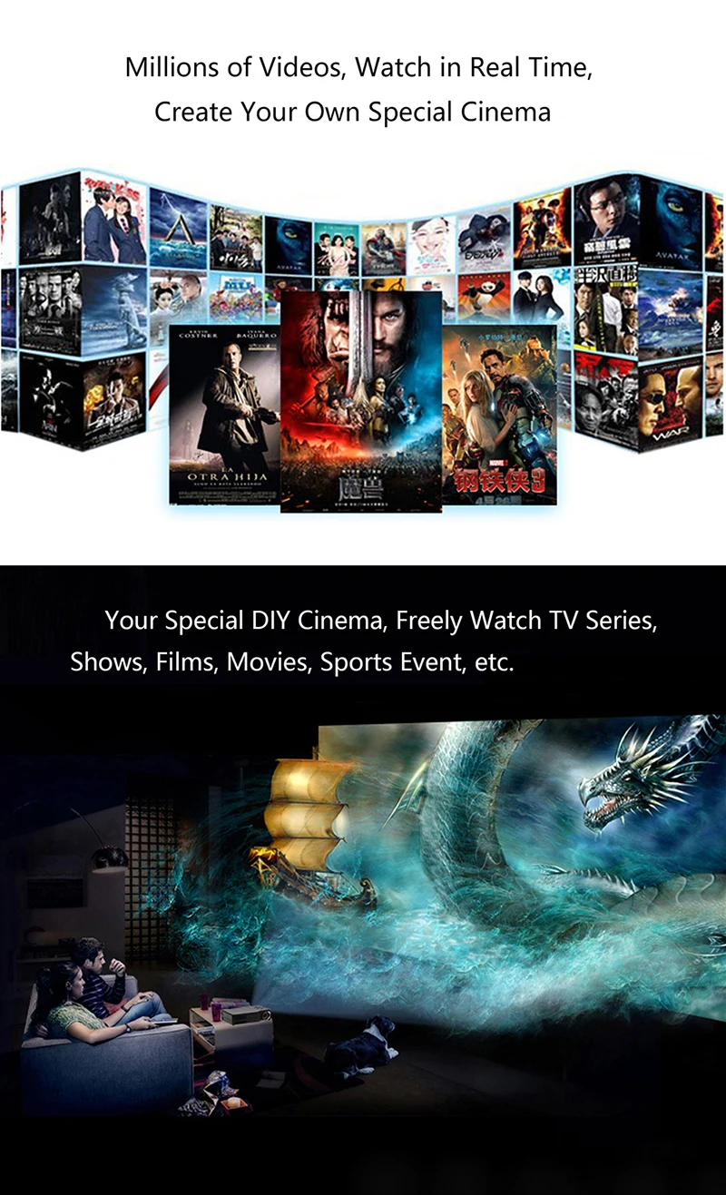 • 3. Широкая совместимость: поддержка Airplay, Miracast, протокола DLNA, а именно поддержка устройств и серий iOS 6.0+, Android 4.0+.
