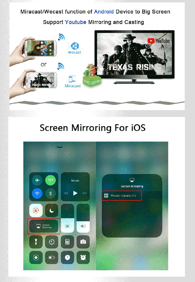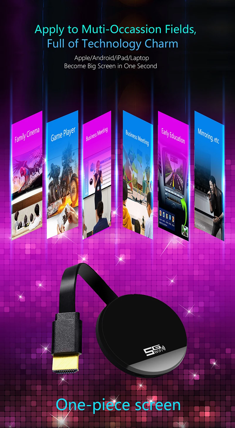 • 1. Беспроводной дисплей: этот беспроводной адаптер дисплея может осуществлять зеркальное отображение или потоковую передачу вашего мобильного устройства на телевизор/проектор/монитор по беспроводной сети.Легко делитесь видео, фотографиями и фильмами на большом экране.Сделайте свой телевизор умным телевизором