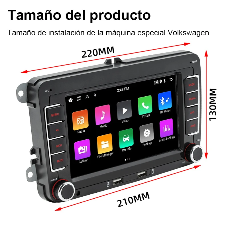Установочный размер: 222×132 мм (размер Volkswagen)