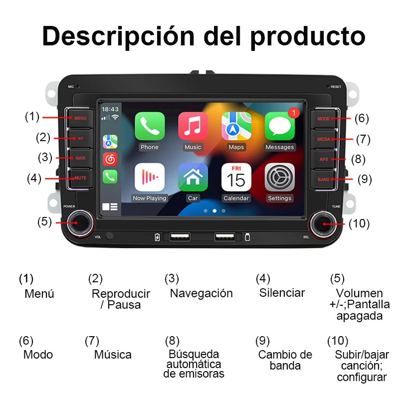 ♦ Стандартная конфигурация включает Carplay и Android Auto, которая автоматически переключается на интерфейс Carplay или Android Auto после подключения к телефону и может сенсорное управление различными функциями на экране.