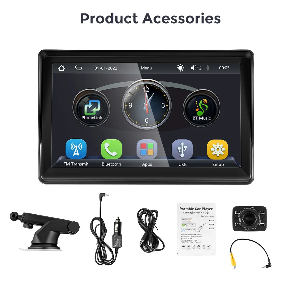 7-дюймовый портативный автомобильный радиоприемник, беспроводной CarPlay Android, универсальный сенсорный экран, мультимедийный видеоплеер с камерой заднего вида FM