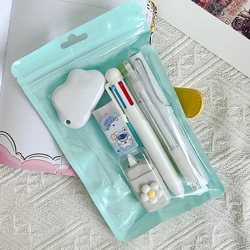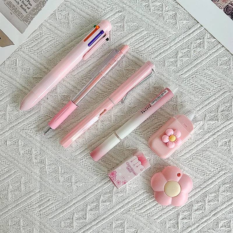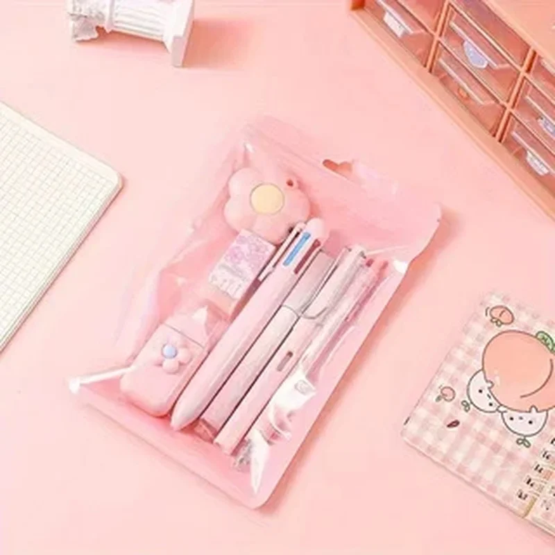 7 шт./компл., милый канцелярский набор кремового цвета для школы, рождественский студенческий подарок, кавайные письменные принадлежности с аксессуарами для ручек для ноутбука