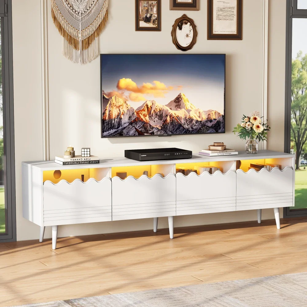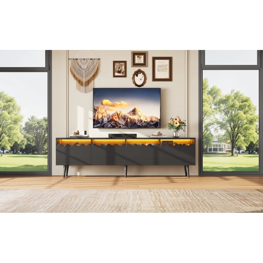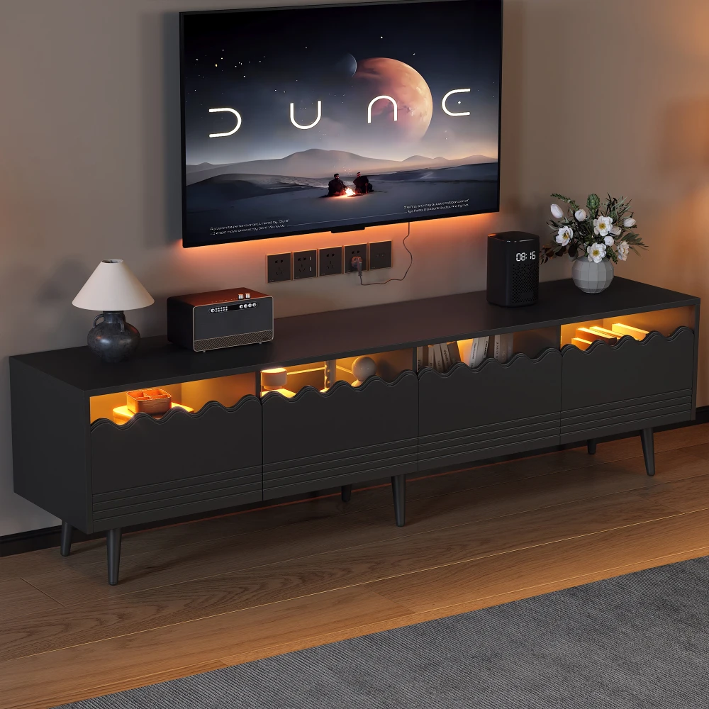 - Большое пространство для хранения: 176 х 38 х 45 см, два ящика + два шкафа + открытое место, можно спрятать приставки и игровые приставки, установить 75-дюймовый телевизор и переключить зону развлечений в гостиной из «хаотика в аккуратный» одним щелчком мыши.