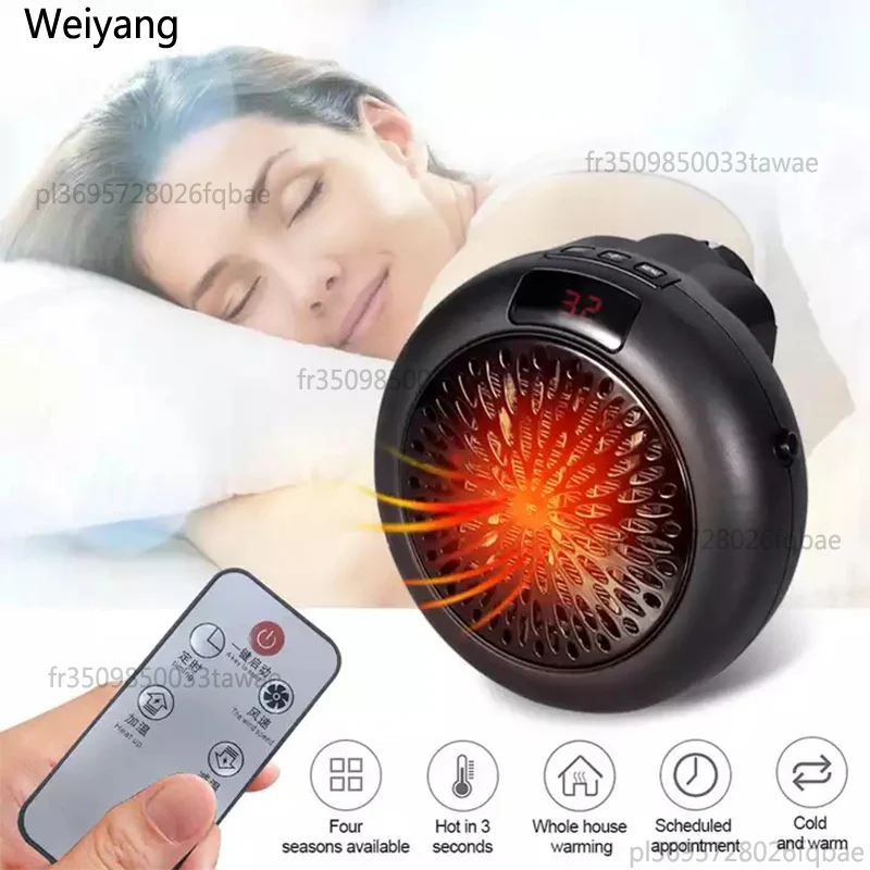 900 Вт мини-подключаемый электрический обогреватель для комнаты, регулируемый термостат, персональный обогреватель со светодиодным дисплеем для офисной комнаты в общежитии