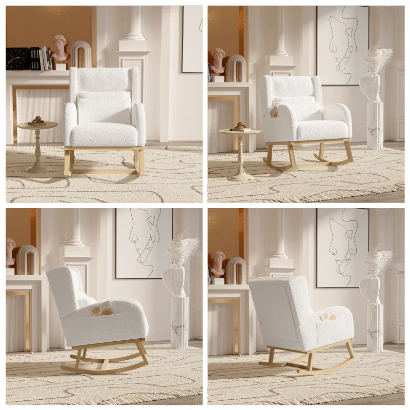 Anajqaqia Teddy Плюшевое кресло-качалка с поясом, белое