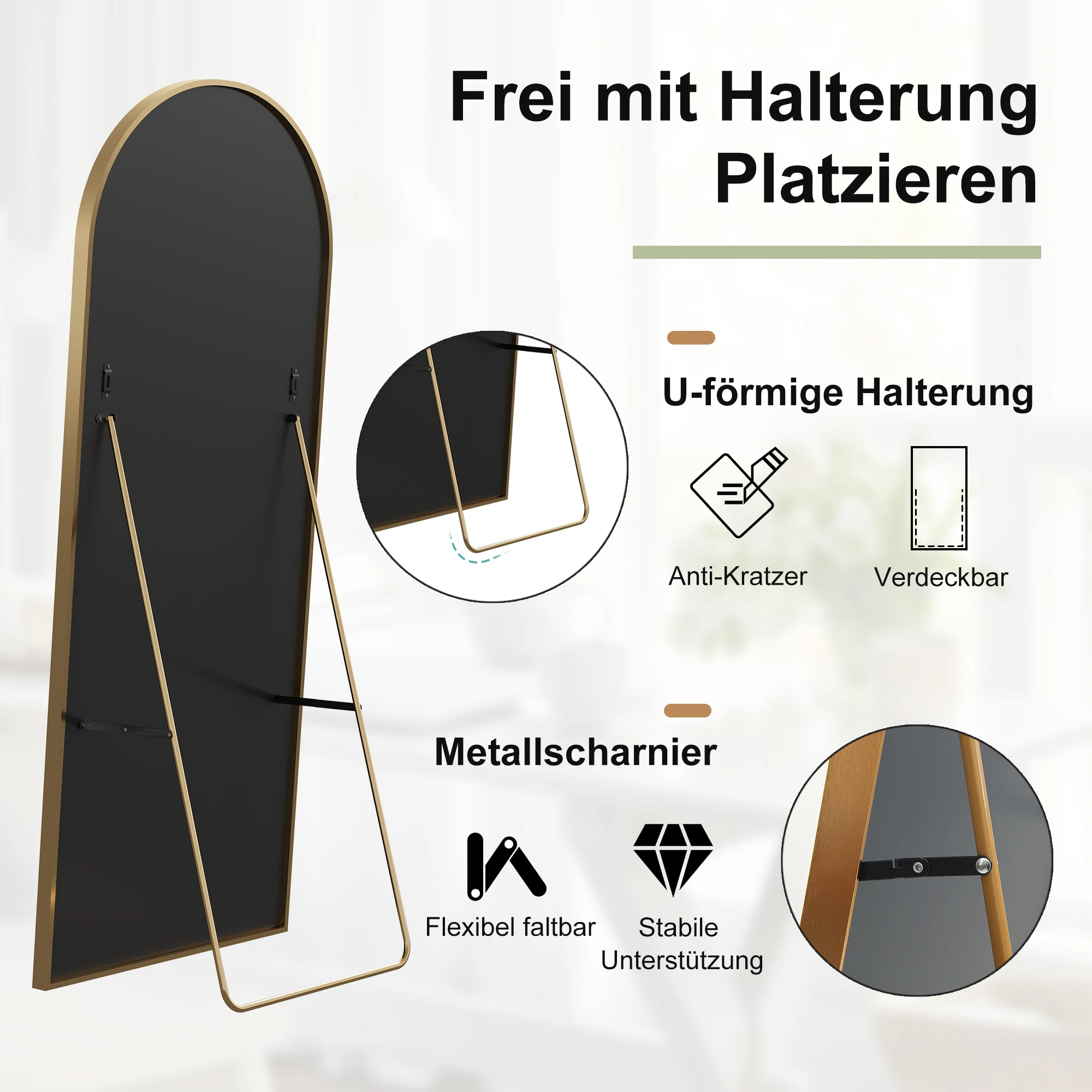 Anajqaqia Туалетное зеркало, арочное зеркало в полный рост, изогнутое стоящее зеркало, рама из алюминиевого сплава, закаленное стекло, для спальни