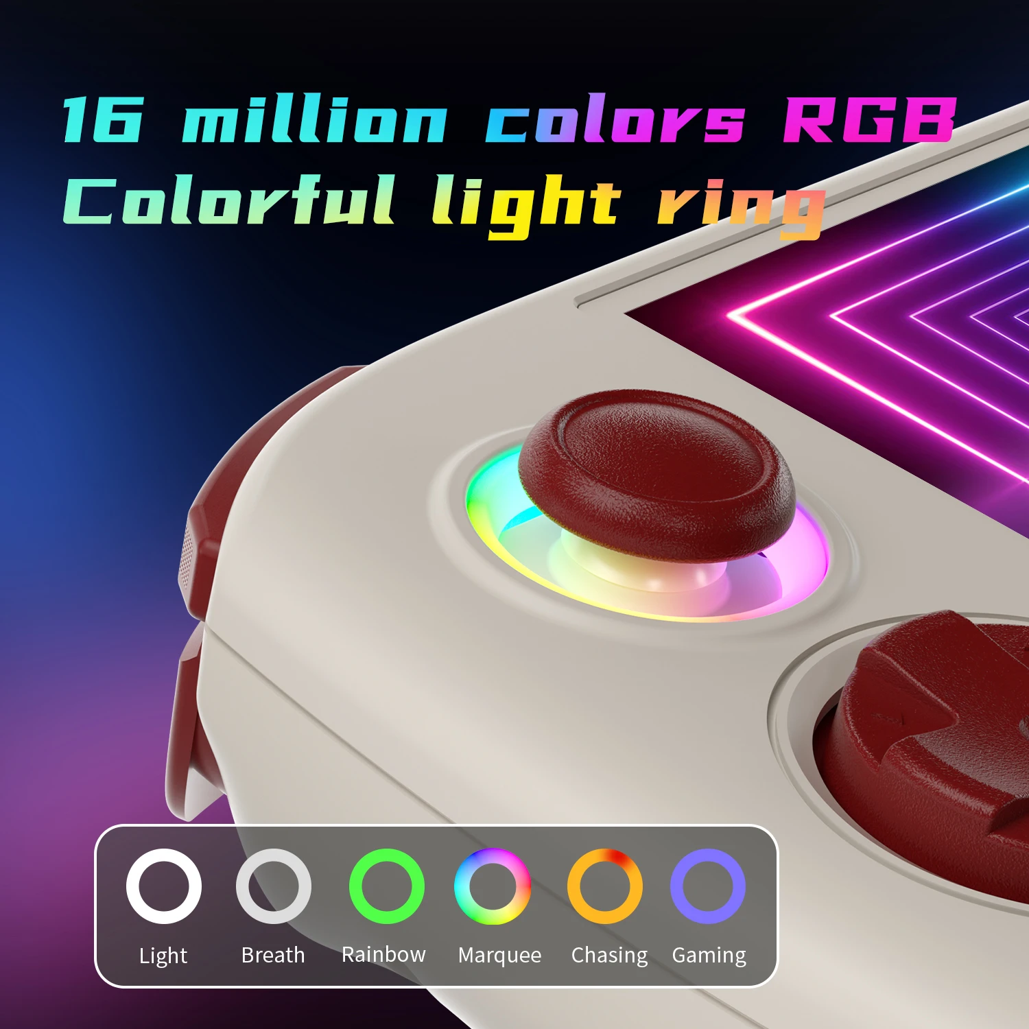 16-миллионное цветное RGB-джойстик, поддержка постоянного света, дыхания, радуги, рамки, погони, игр и других световых эффектов, поддержка настройки цвета и регулировки яркости. |