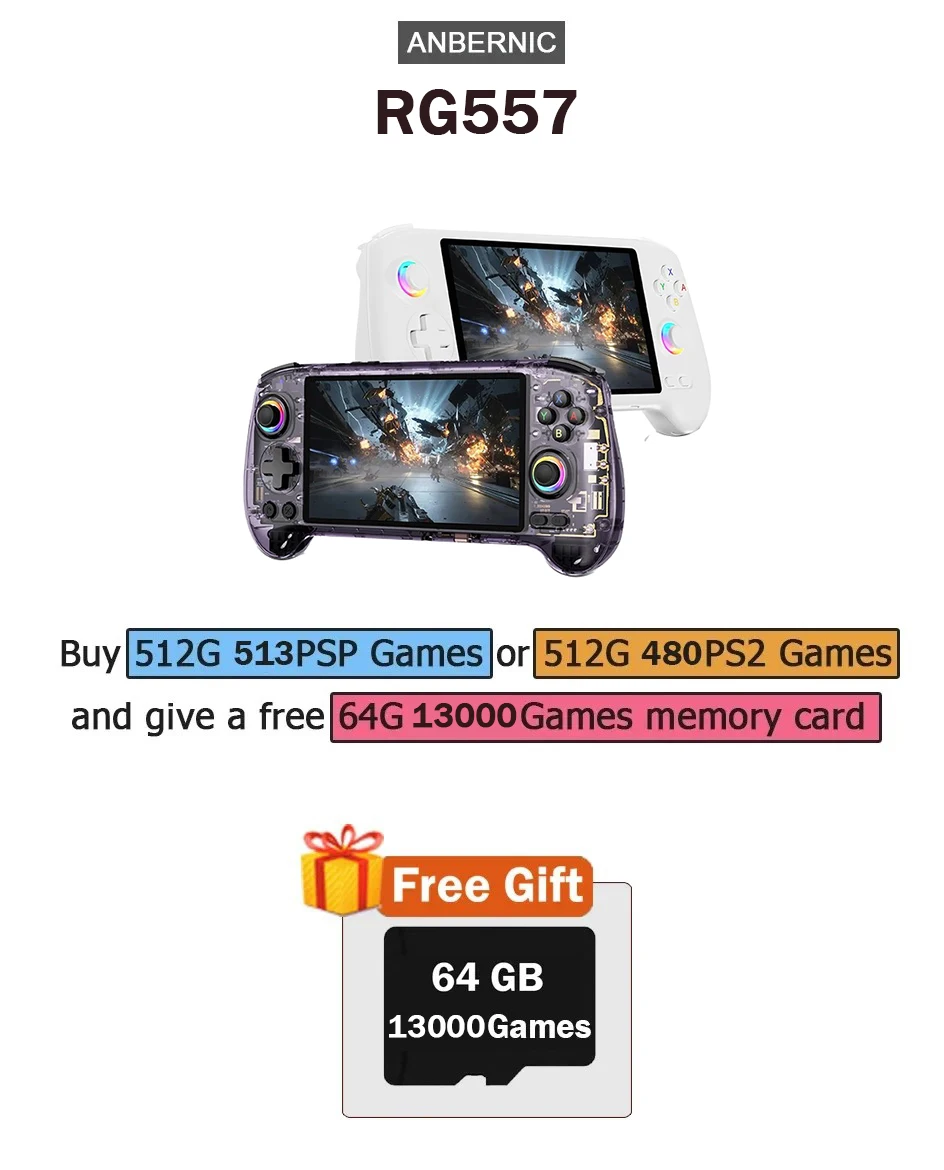 ANBERNIC RG557 НОВАЯ портативная игровая консоль 5,48 дюйма AMOLED-экран Android 14 5500 мАч WIFI 6E BT5.3 RGB подсветка PSP PS2 игра