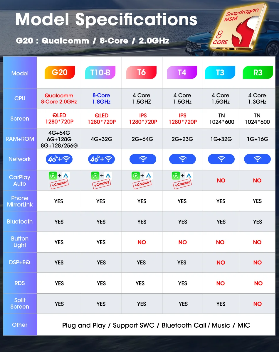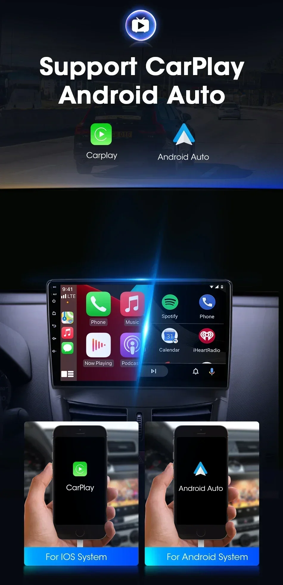 поддержка iphone Carplay/Android Auto (кроме версии K3, экран мобильного телефона отображается на экране радио, вождение более удобное и интеллектуальное