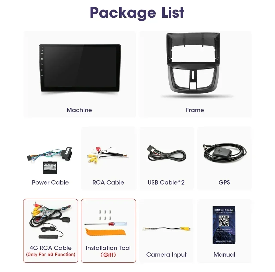Машина/разъем/рама/кабель RCA/кабель USB*2/GPS |