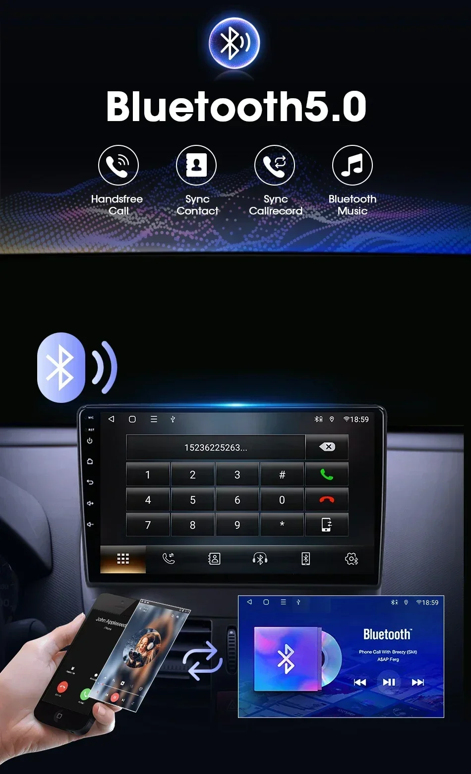 Новейшая технология Bluetooth 5.0.Поддержка больших расстояний, более стабильная передача данных, поддержка телефона Bluetooth, музыки Bluetooth, синхронизация контактов мобильного телефона… и т. д.