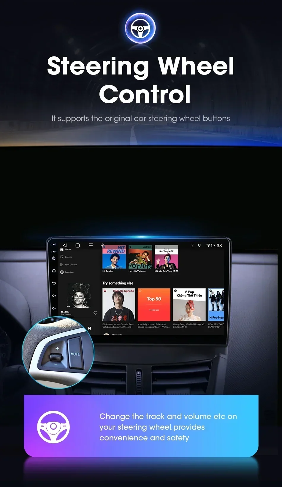 Все модели поддерживают оригинальное управление рулевым колесом автомобиля.При первом использовании версии без canbus вам необходимо изучить ключ вручную.Версию с canbus можно использовать после проверки и подключения canbus.