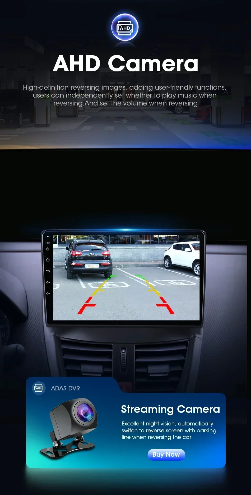 Поддержка камеры AHD, реверсивного экрана высокой четкости, добавление гуманизированных функций и настройка громкости при движении задним ходом.