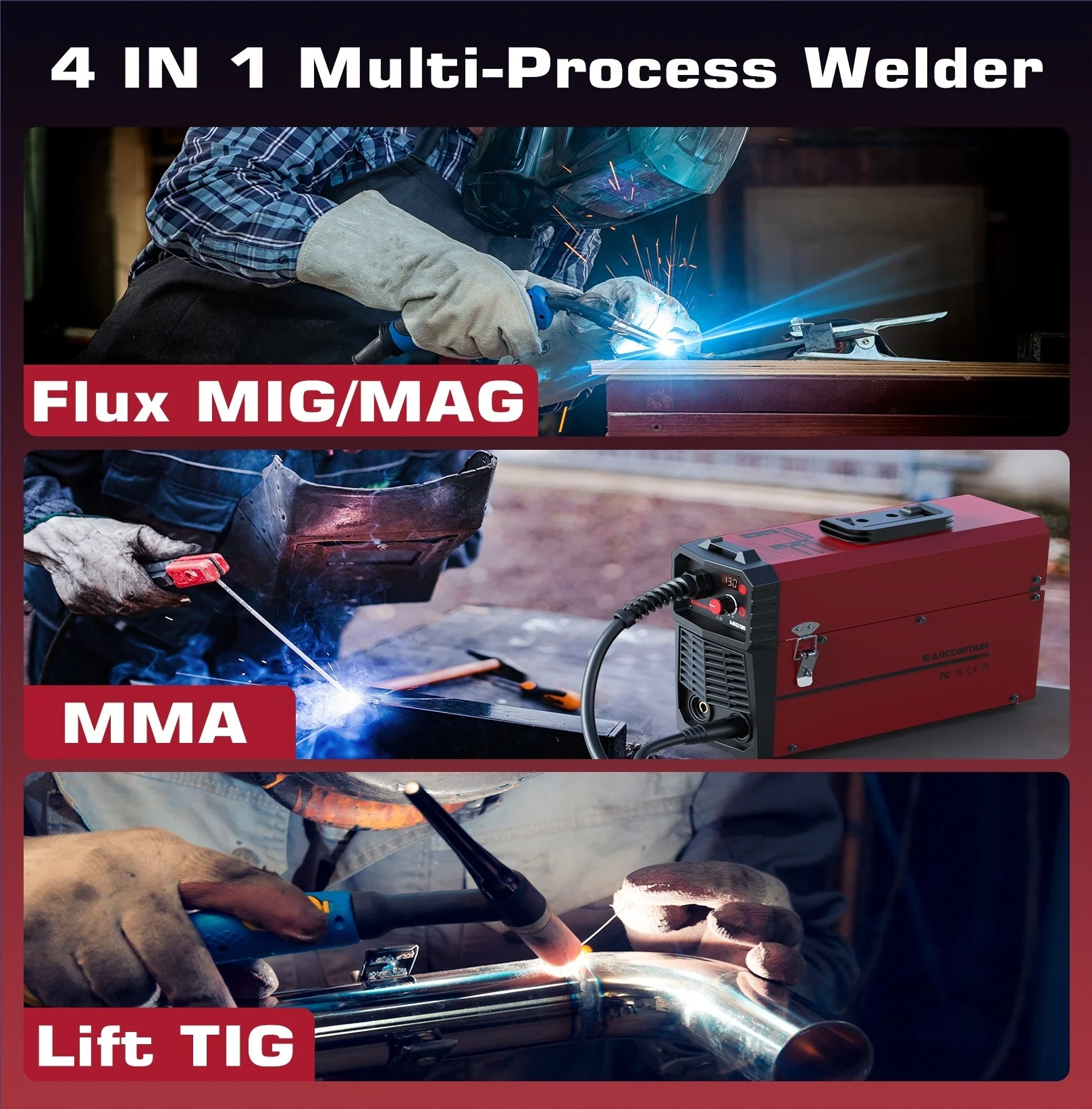 ARCCAPTAIN 140A МНОГОЦЕСС FLUX CORE MIG/MMA/LIFT МАШИНА TIG С ПРОВОДСТВОМ С ПРОВОДОМ 2 фунта