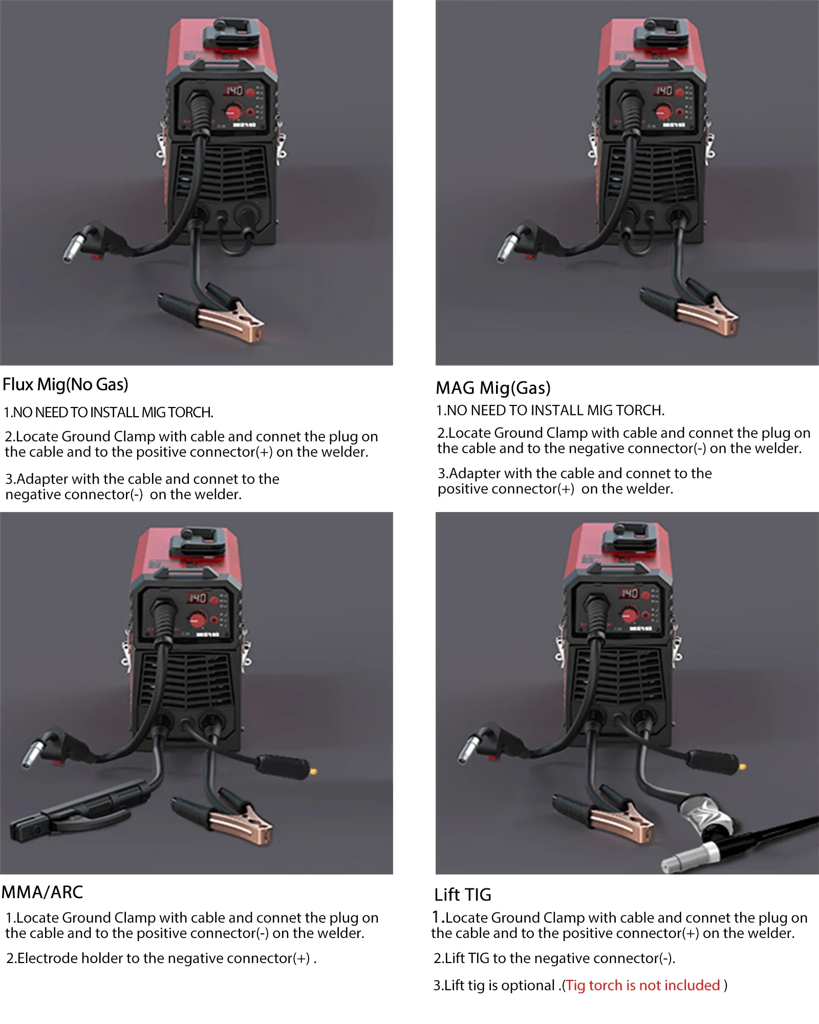 4 функции в 1 многопроцессорном сварочном аппарате: подходит для флюсового сердечника/безгазового/газового Mig, ММА, Lift Tig,