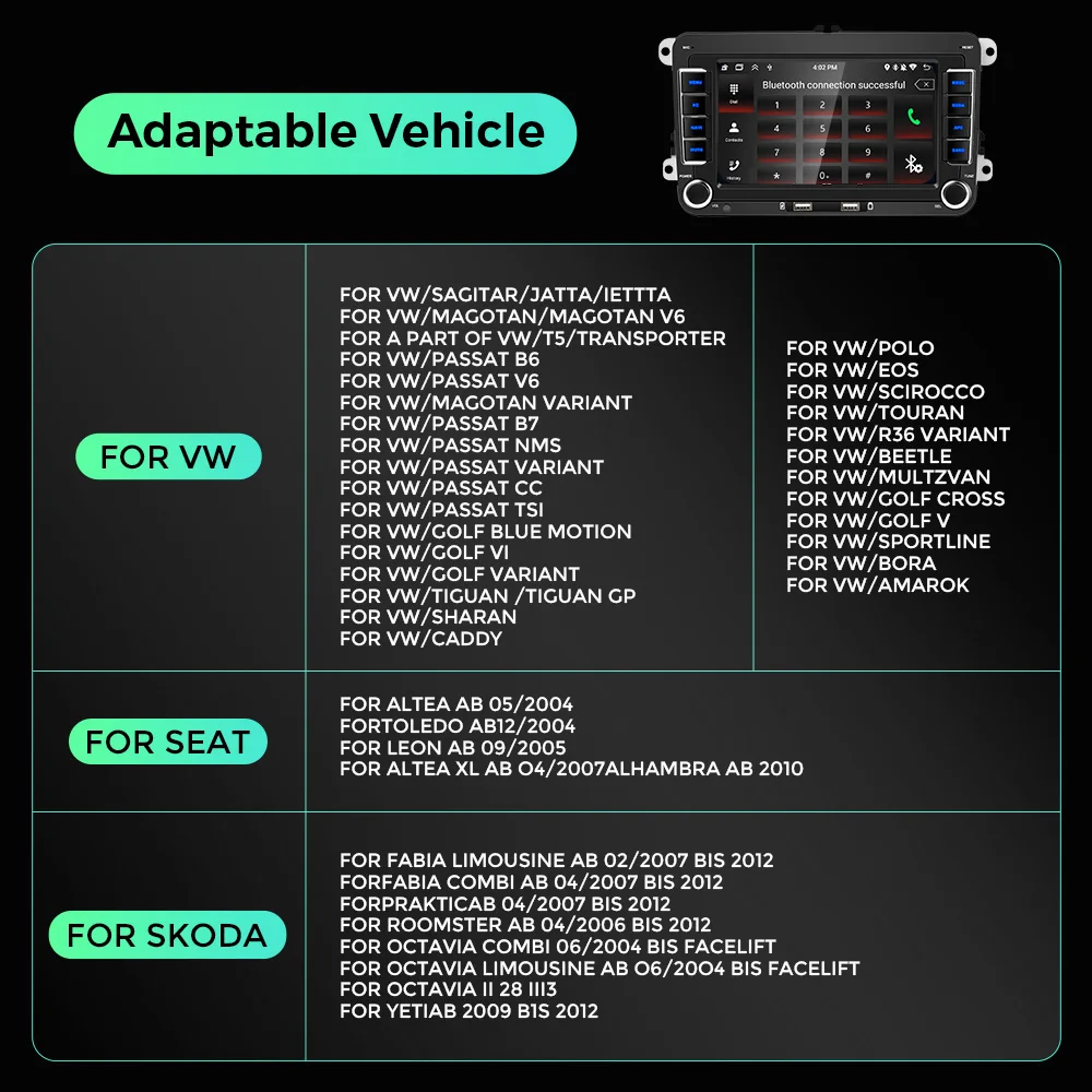 Размер установки: 222×132 мм (специальный размер для автомобилей Volkswagen)