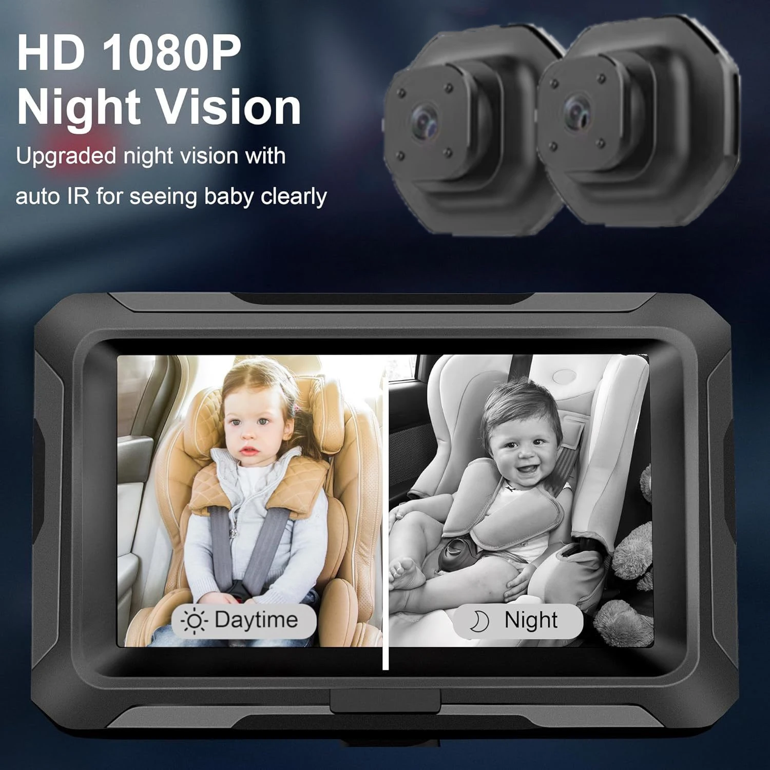 Автомобильная радионяня с двумя объективами 1080P, 3 способа установки, видимый задний сиденье, регулируемый объектив, 5-дюймовый IPS-экран