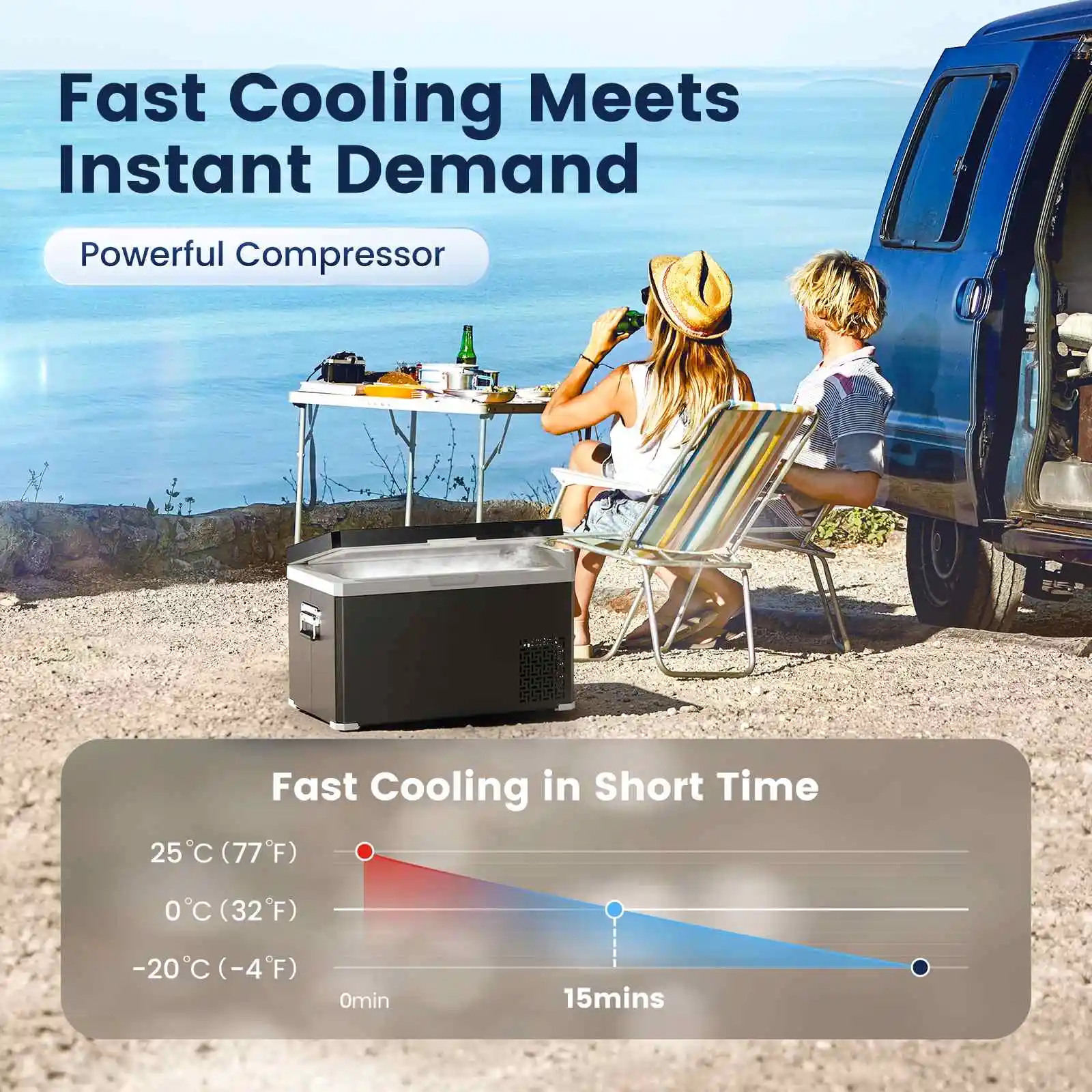 Автомобильный холодильник KROAK объемом 30 л остывает ниже 0 лет.°C всего за 15 минут.В режиме MAX он достигает -20°C менее чем за 4 часа.Будь то мясо, овощи или мороженое: все остается свежим даже в длительных поездках или походах.